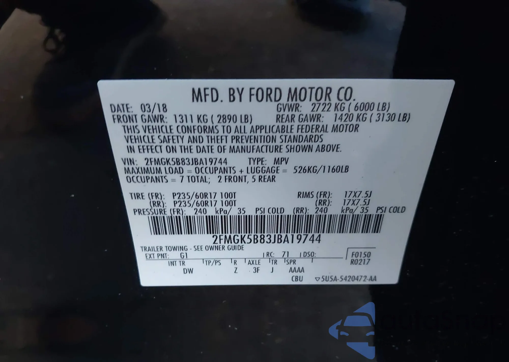 • VIN: 2FMGK5B83JBA19744