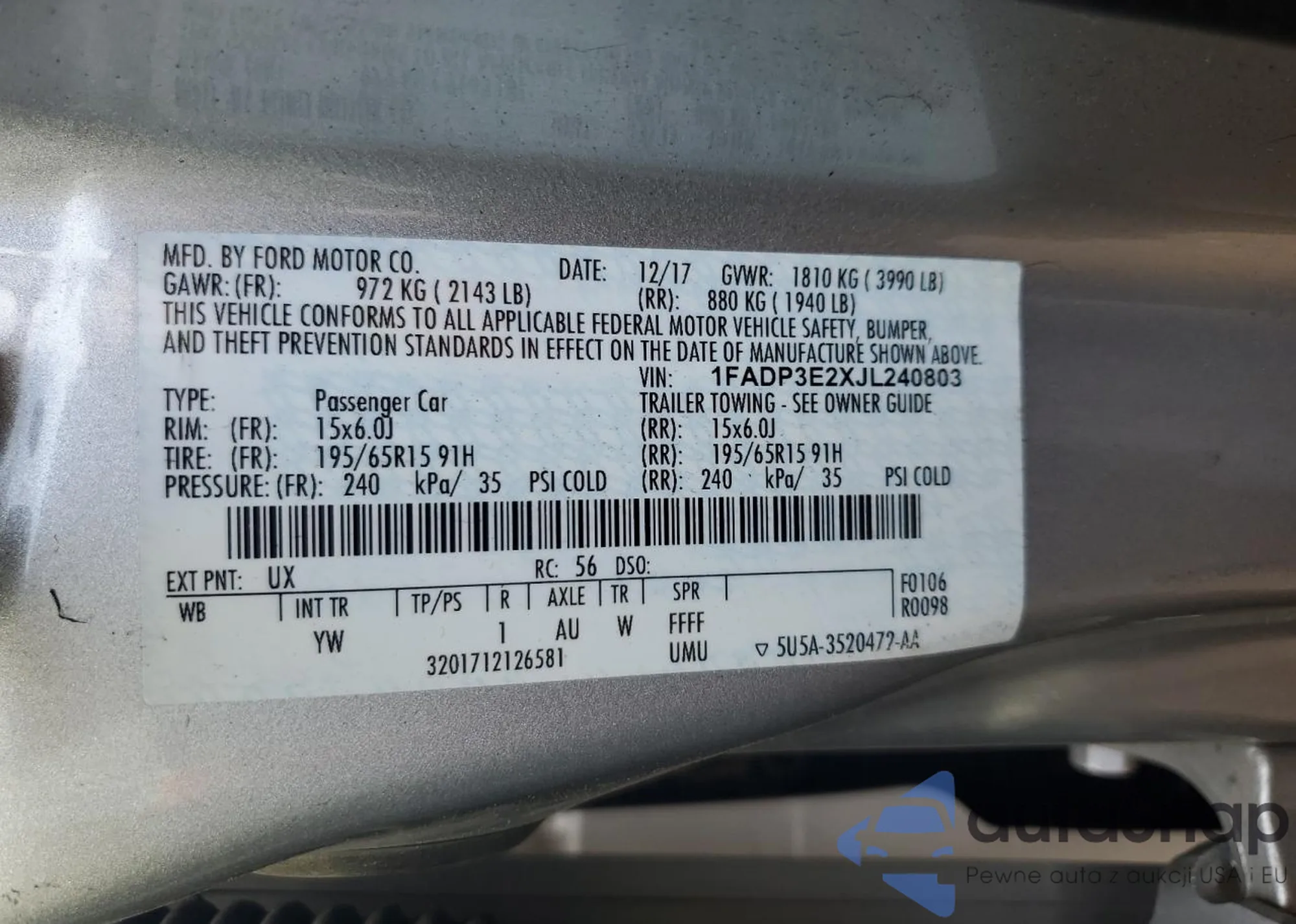 VIN: 1FADP3E2XJL240803