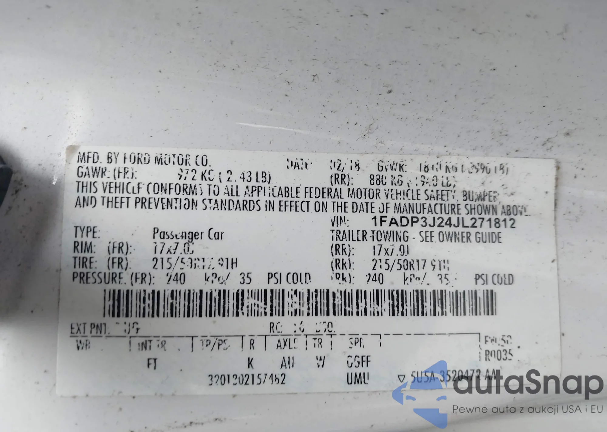 VIN: 1FADP3J24JL271812