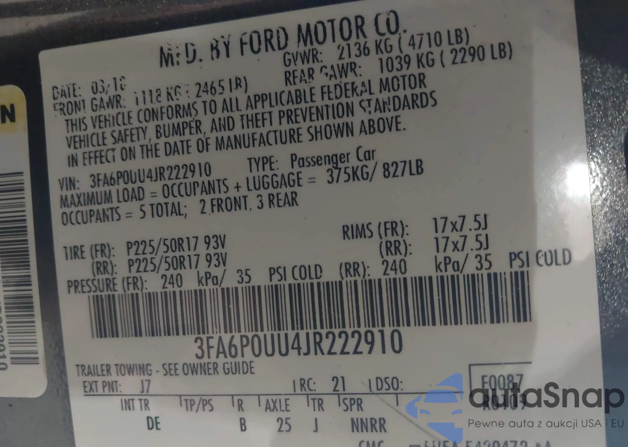 VIN: 3FA6P0UU4JR222910
