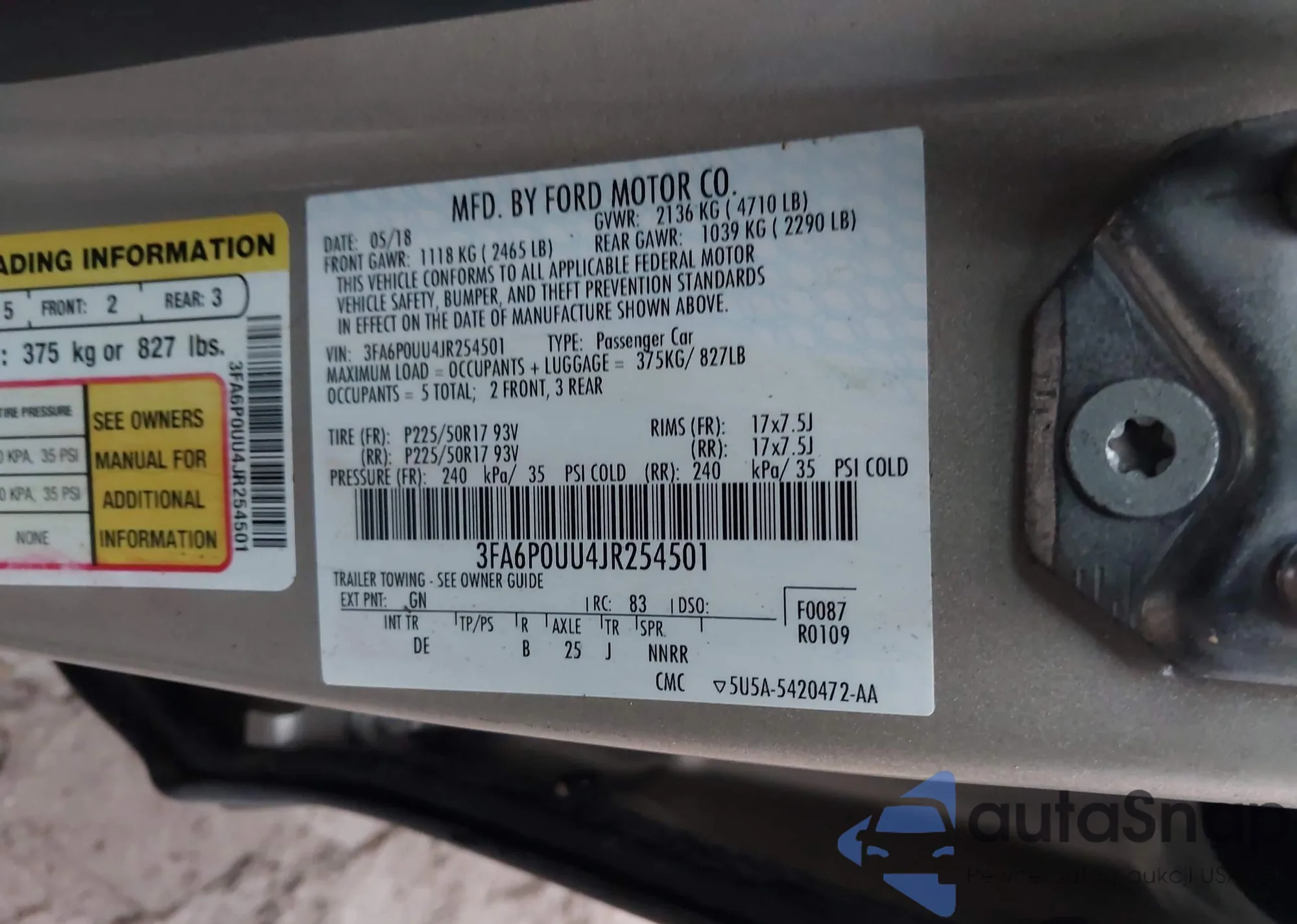 The car Ford Fusion 2018 (VIN 3FA6P0UU4JR254501) has not been auctioned before. The documents are clean, and the mileage matches or is below the market average. Sold by an insurance company – we recommend purchase. Delivery to the port will take approx. 6–8 weeks.