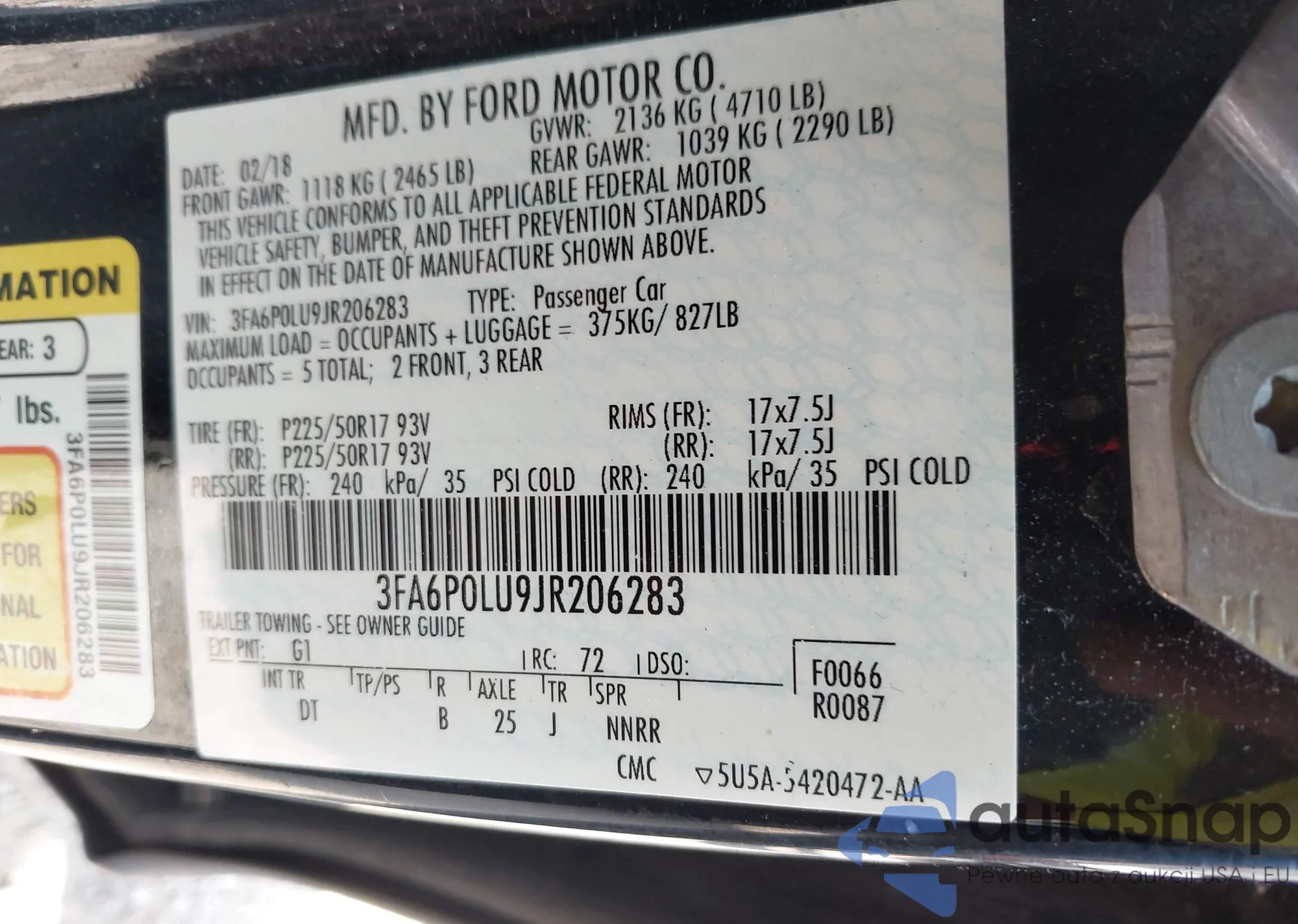 VIN: 3FA6P0LU9JR206283