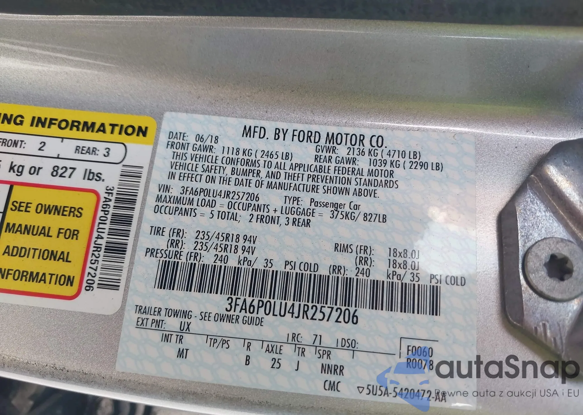 VIN: 3FA6P0LU4JR257206