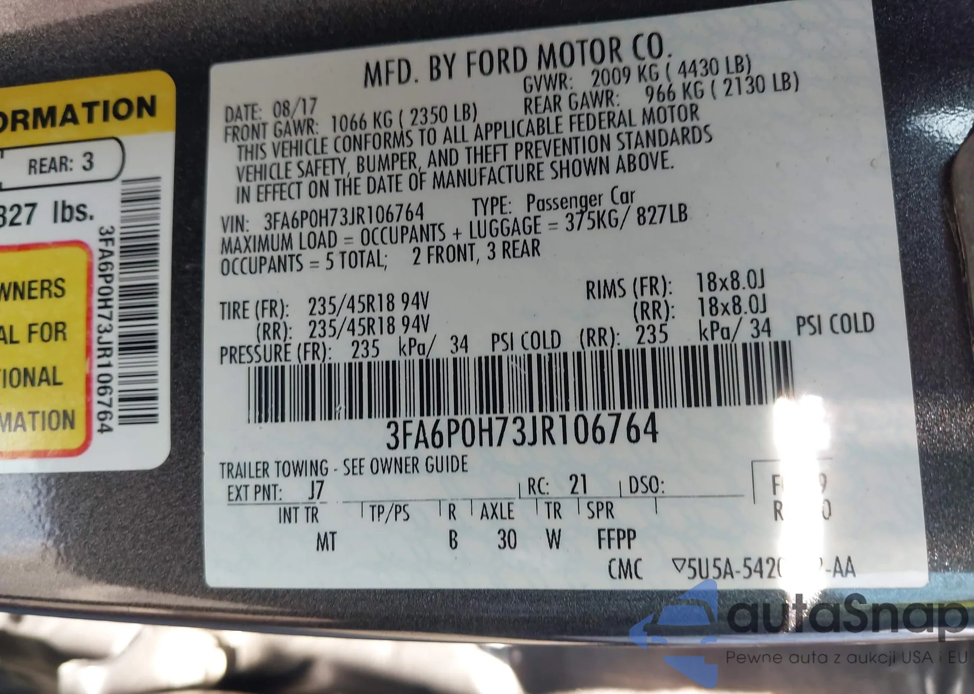 VIN: 3FA6P0H73JR106764