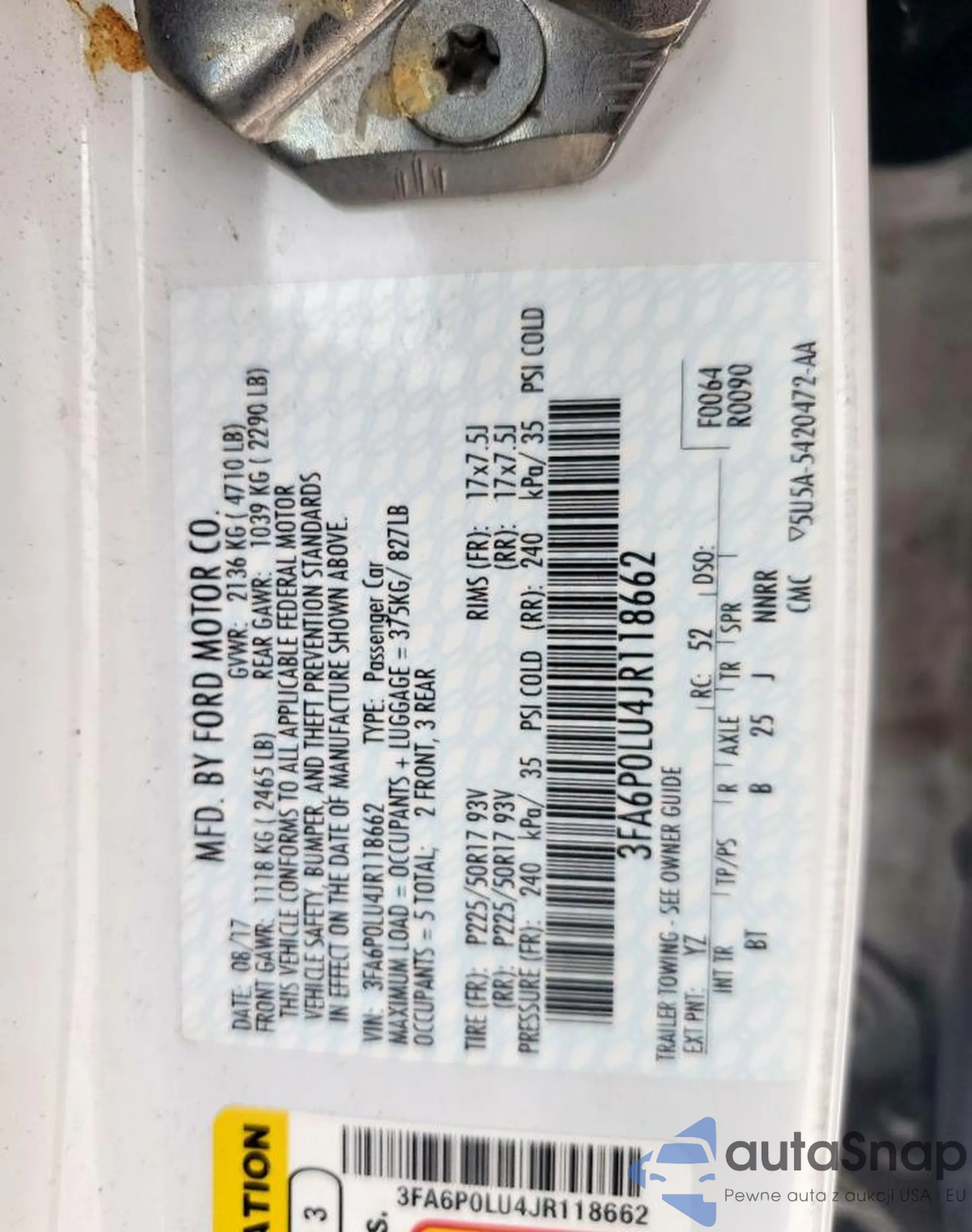• VIN: 3FA6P0LU4JR118662