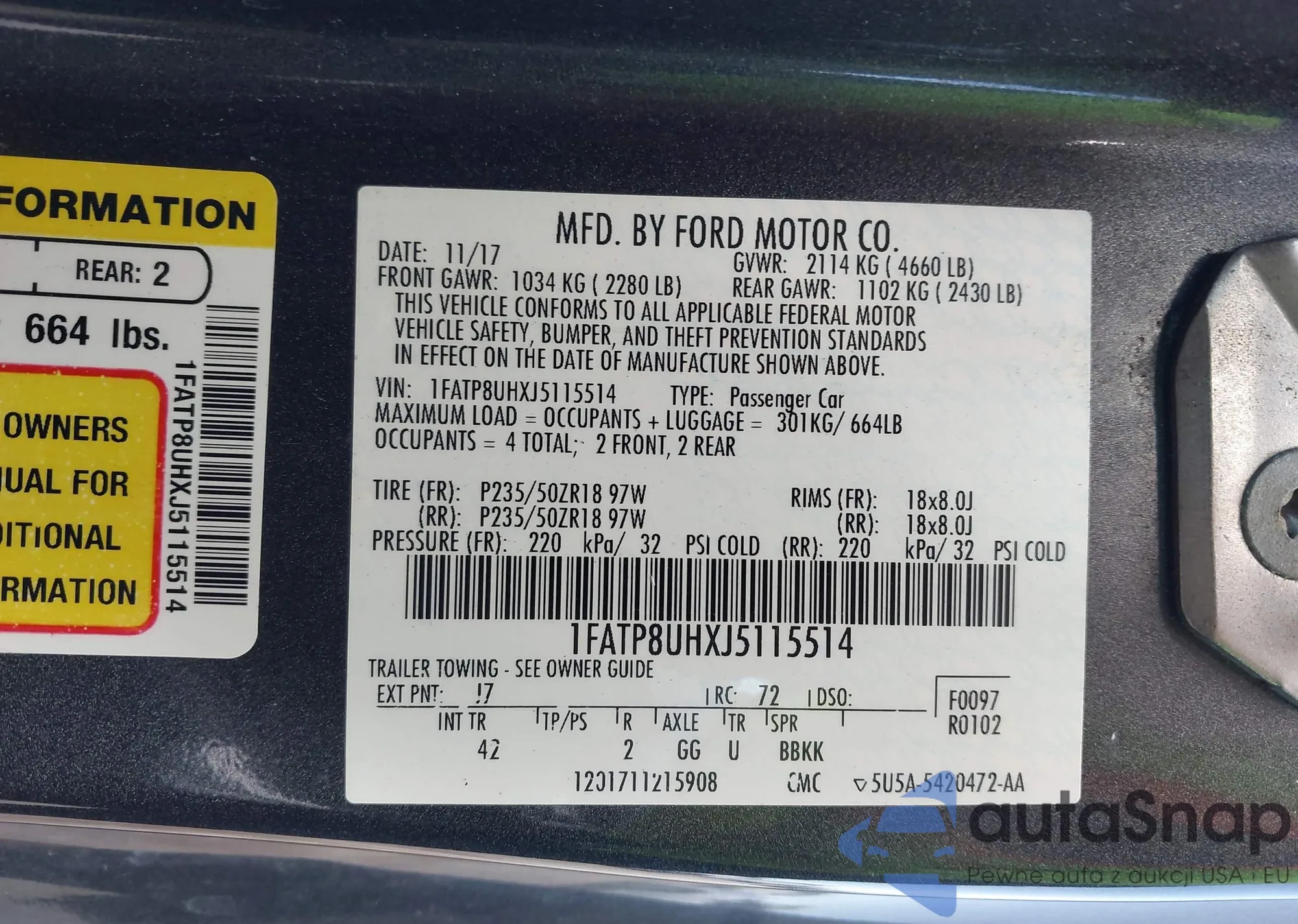 VIN: 1FATP8UHXJ5115514