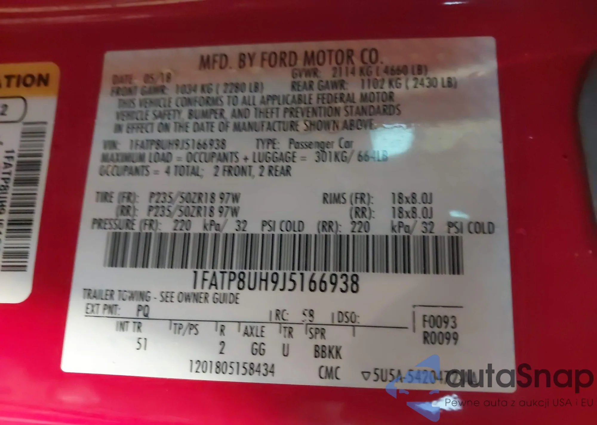 • VIN: 1FATP8UH9J5166938