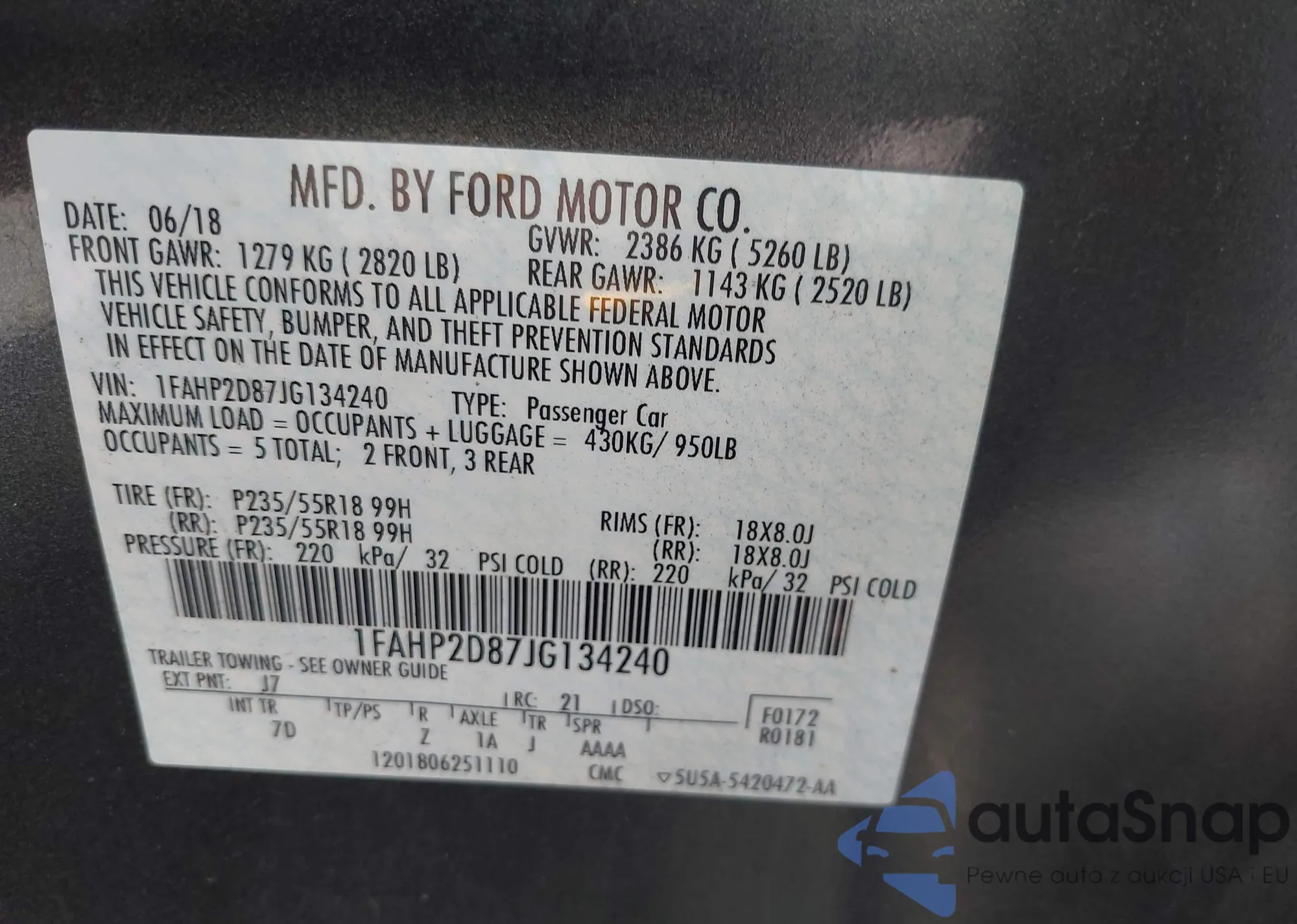 • VIN: 1FAHP2D87JG134240