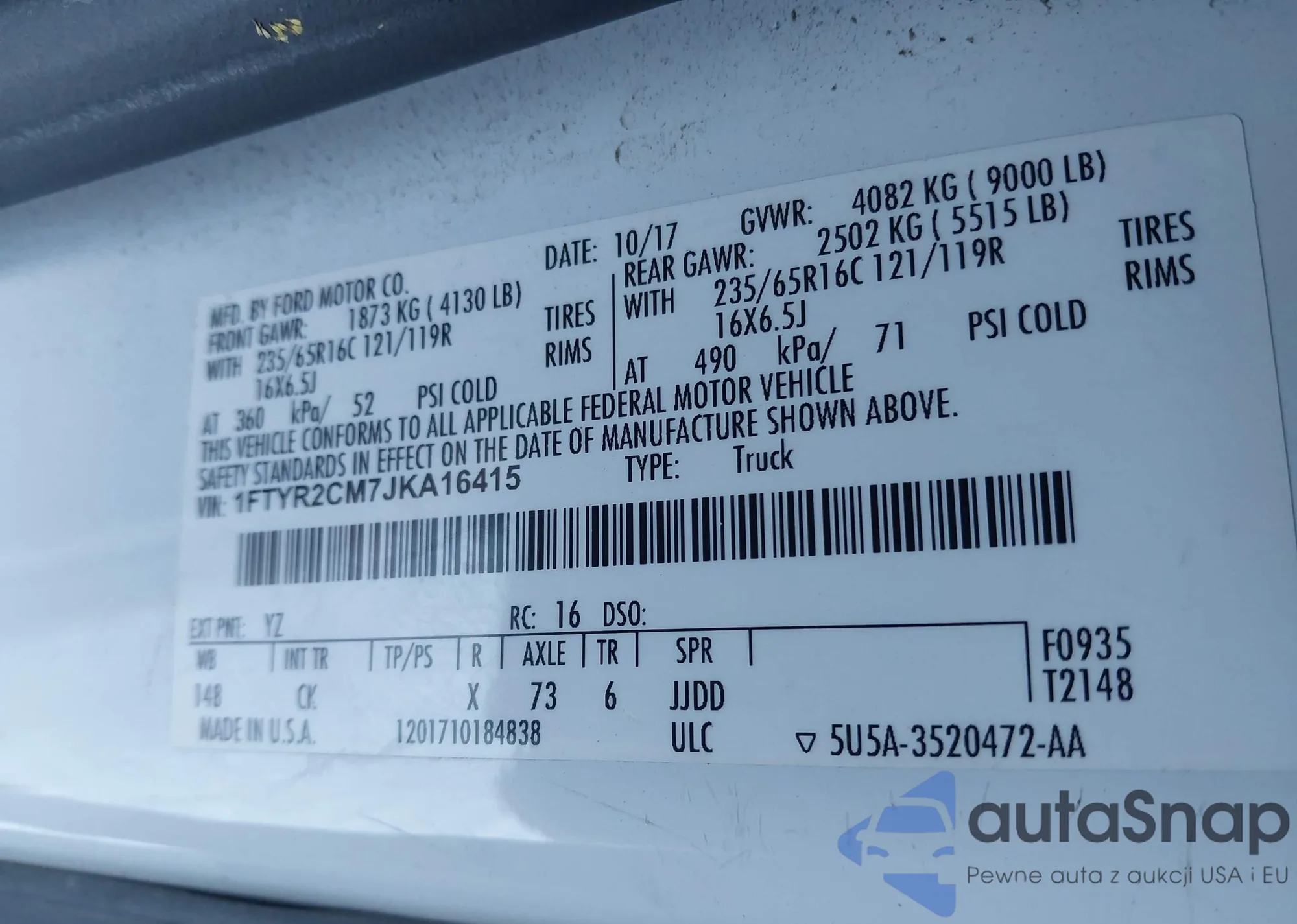 VIN: 1FTYR2CM7JKA16415
