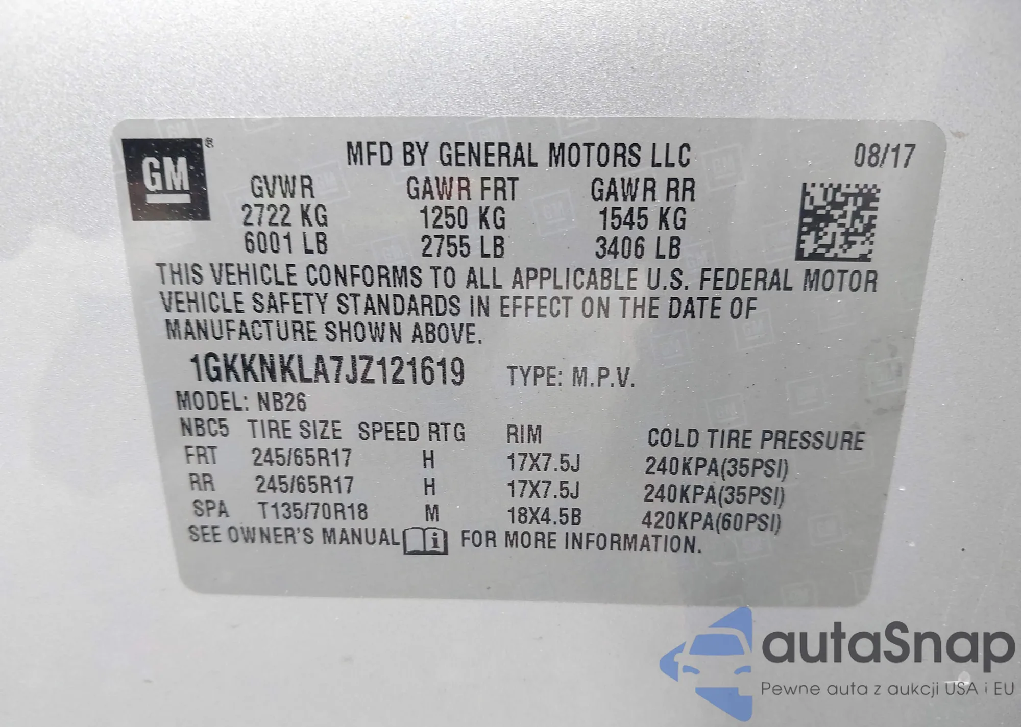 VIN: 1GKKNKLA7JZ121619