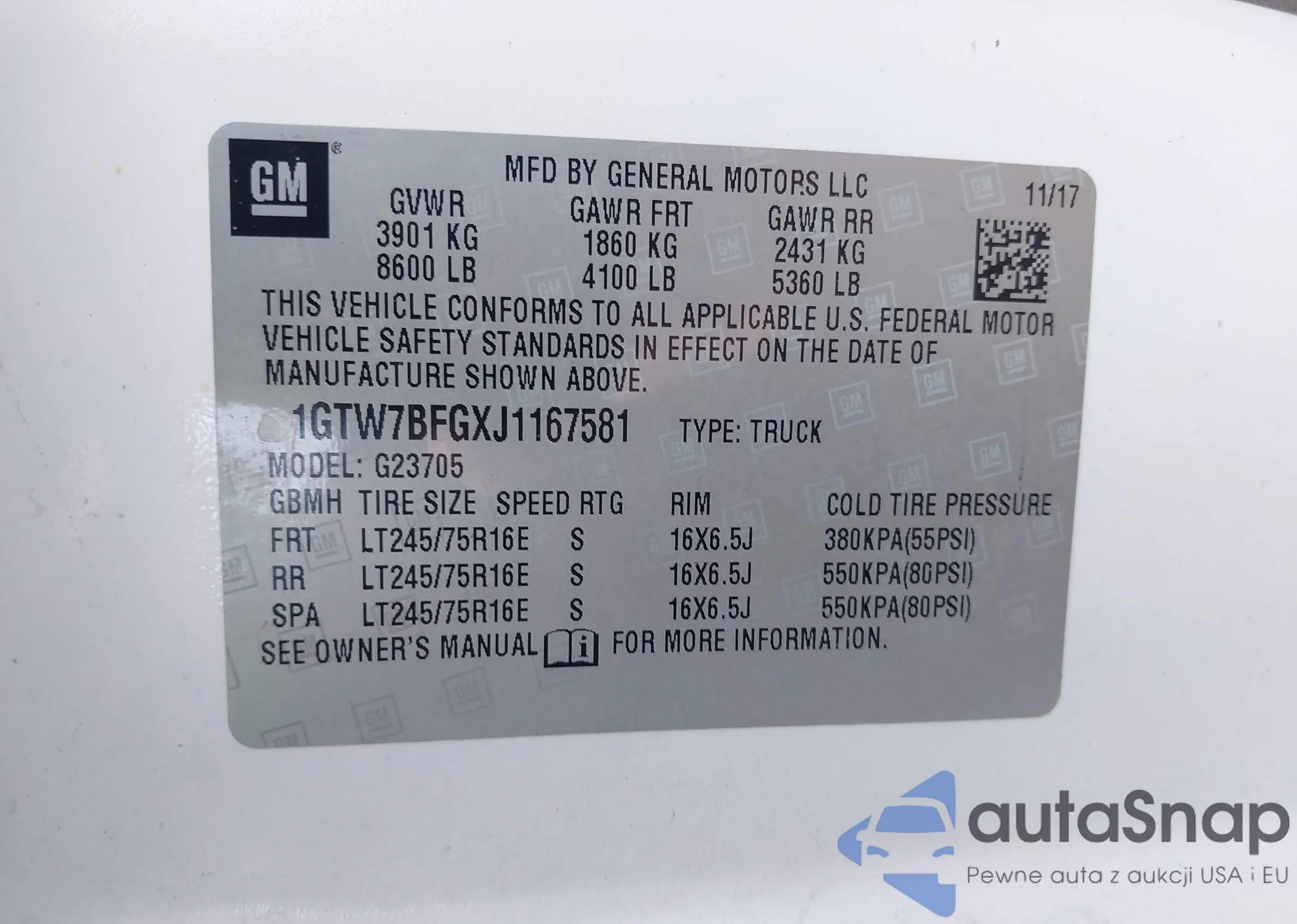 VIN: 1GTW7BFGXJ1167581