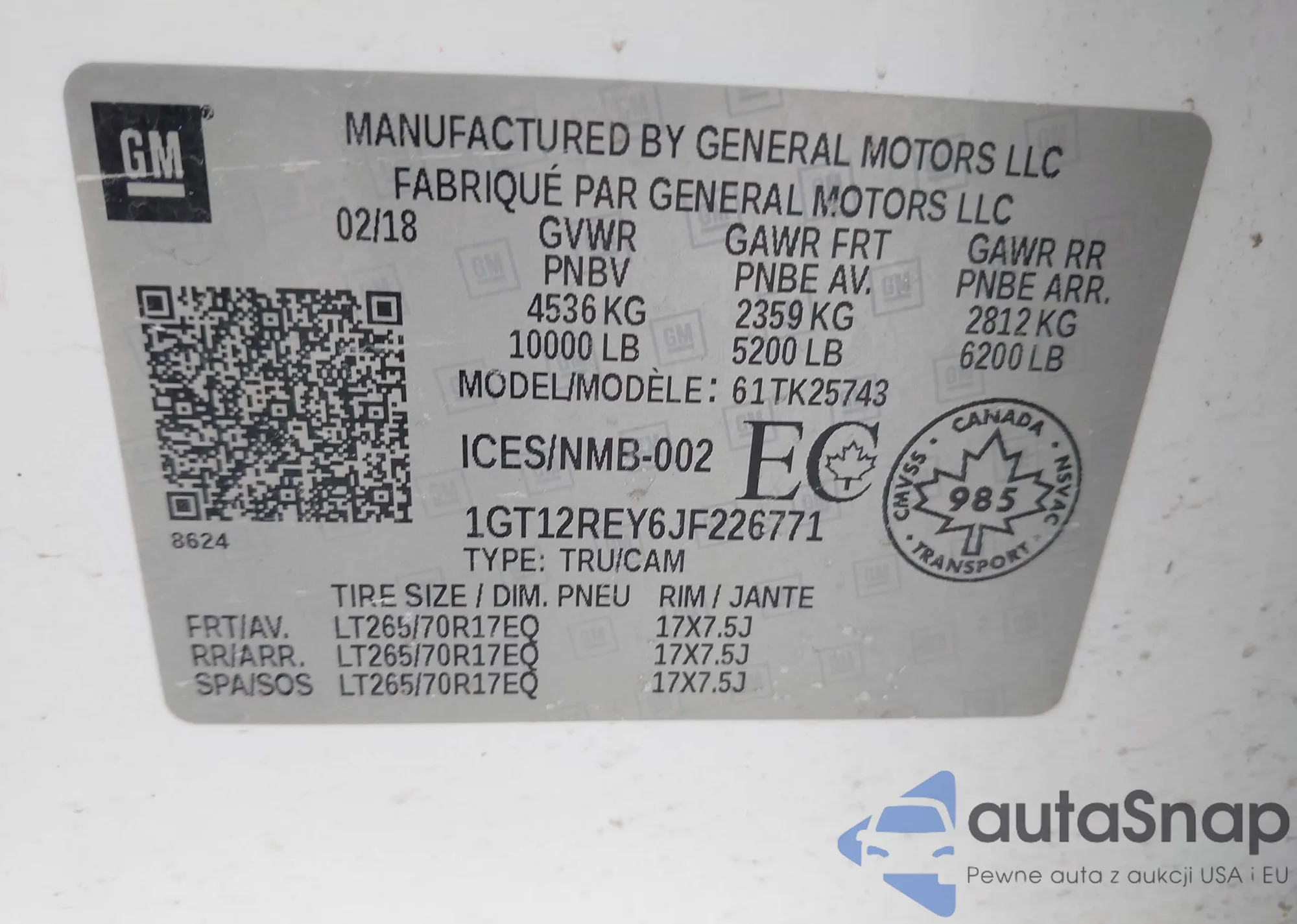 The car GMC Sierra 2018 (VIN 1GT12REY6JF226771) has not been auctioned before. The documents are clean, and the mileage matches or is below the market average. Sold by an insurance company – we recommend purchase. Delivery to the port will take approx. 6–8 weeks.