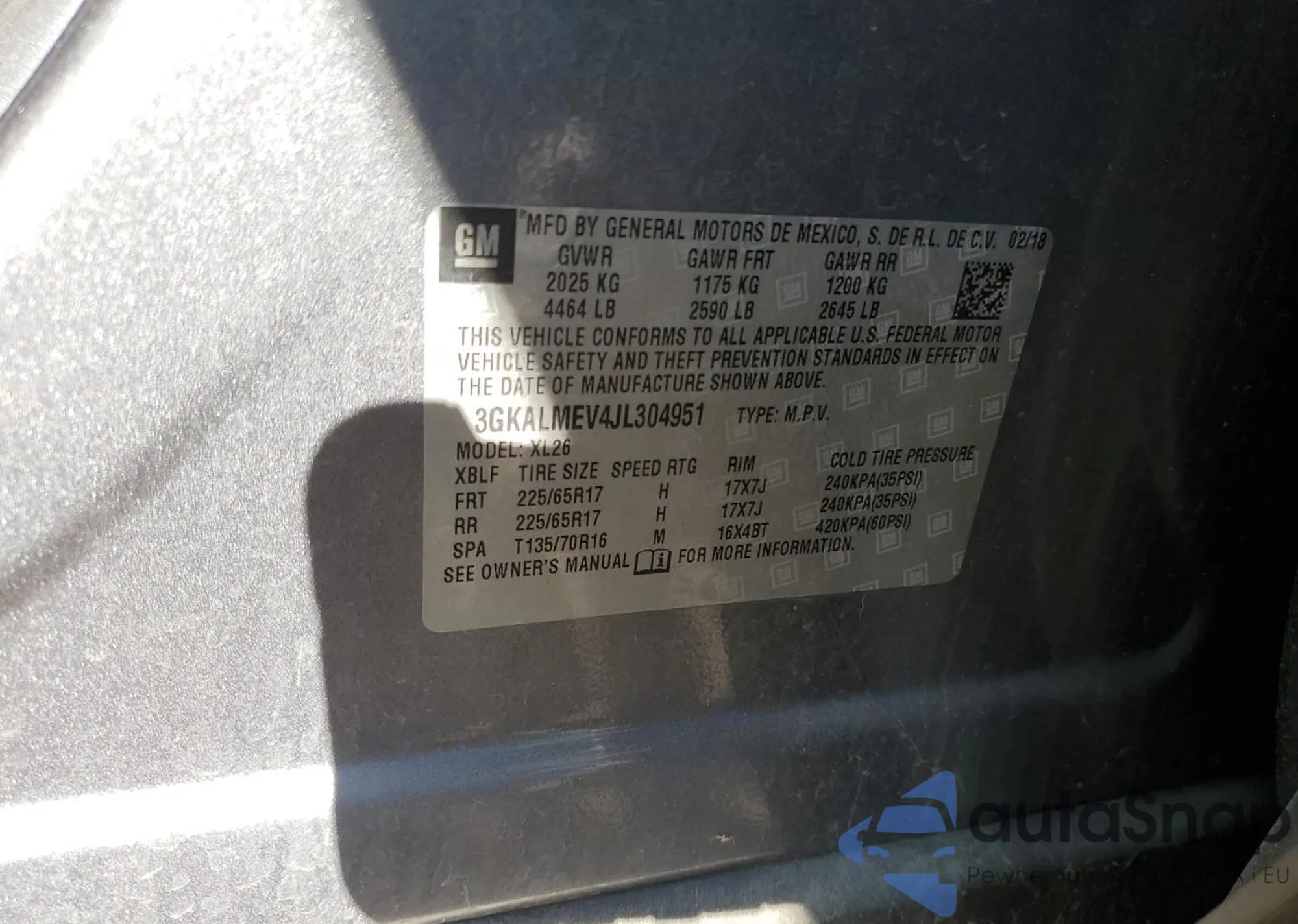 VIN: 3GKALMEV4JL304951