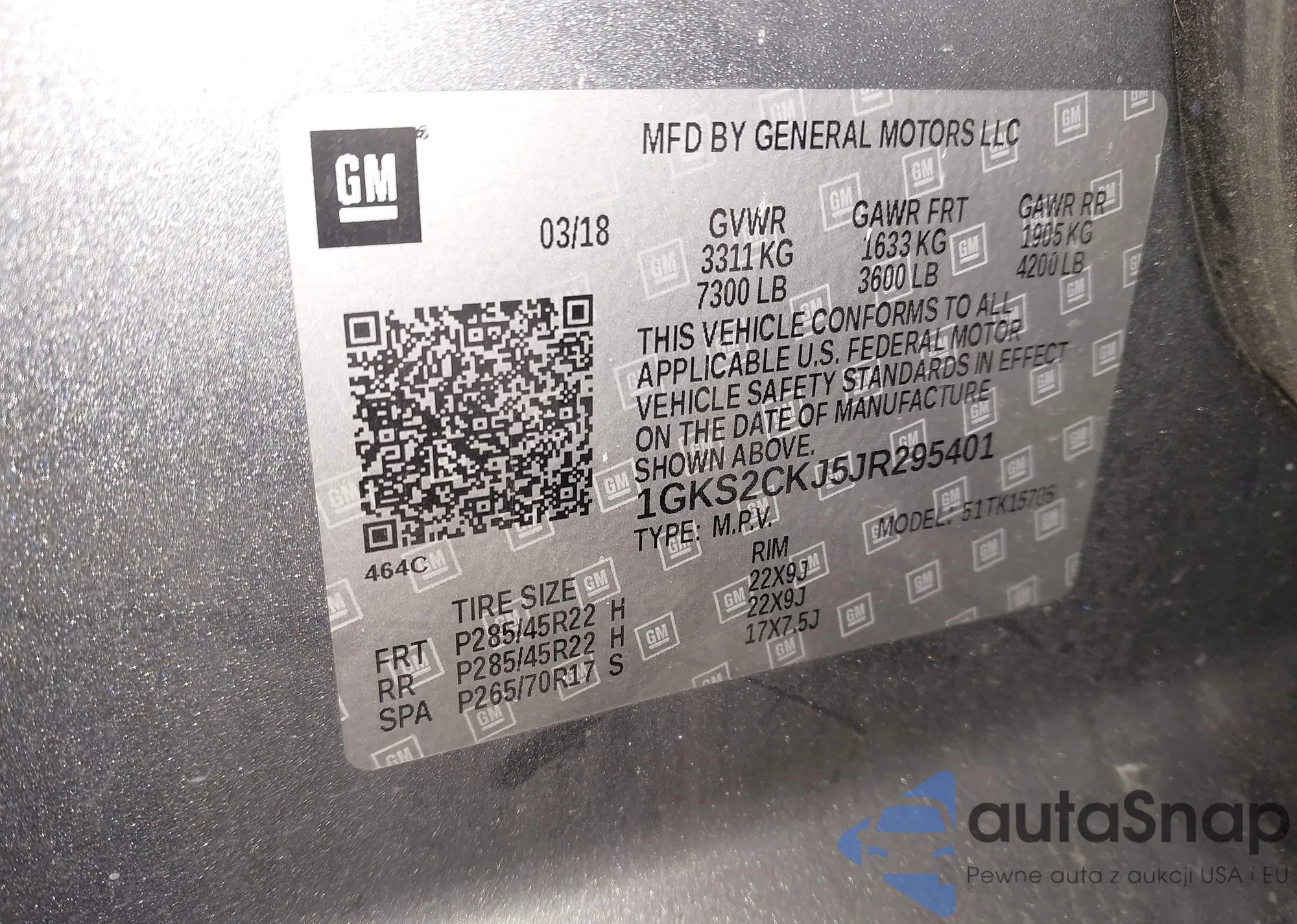 The car GMC Yukon 2018 (VIN 1GKS2CKJ5JR295401) has not been auctioned before. The documents are clean, and the mileage matches or is below the market average. Sold by an insurance company – we recommend purchase. Delivery to the port will take approx. 6–8 weeks.