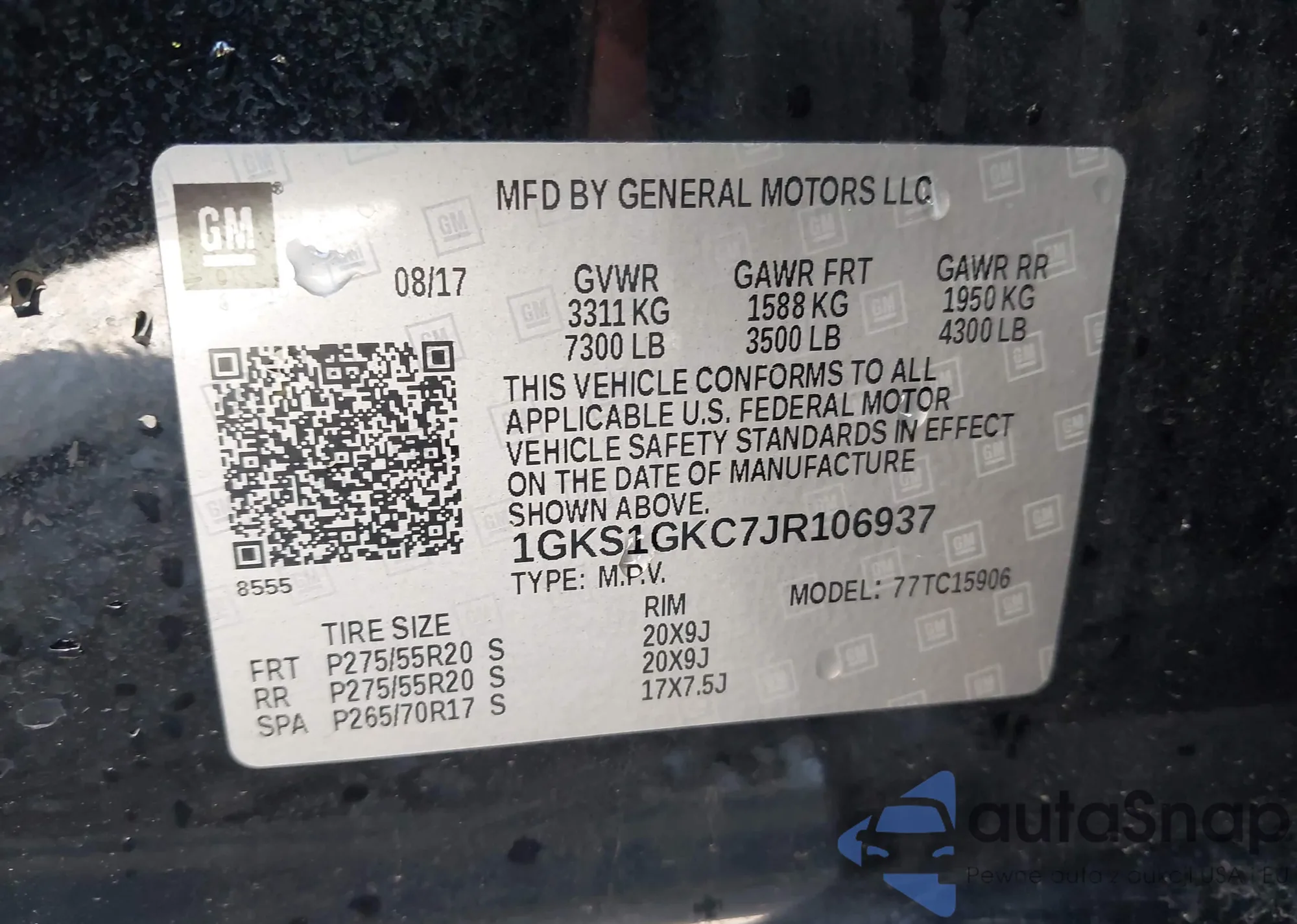 VIN: 1GKS1GKC7JR106937