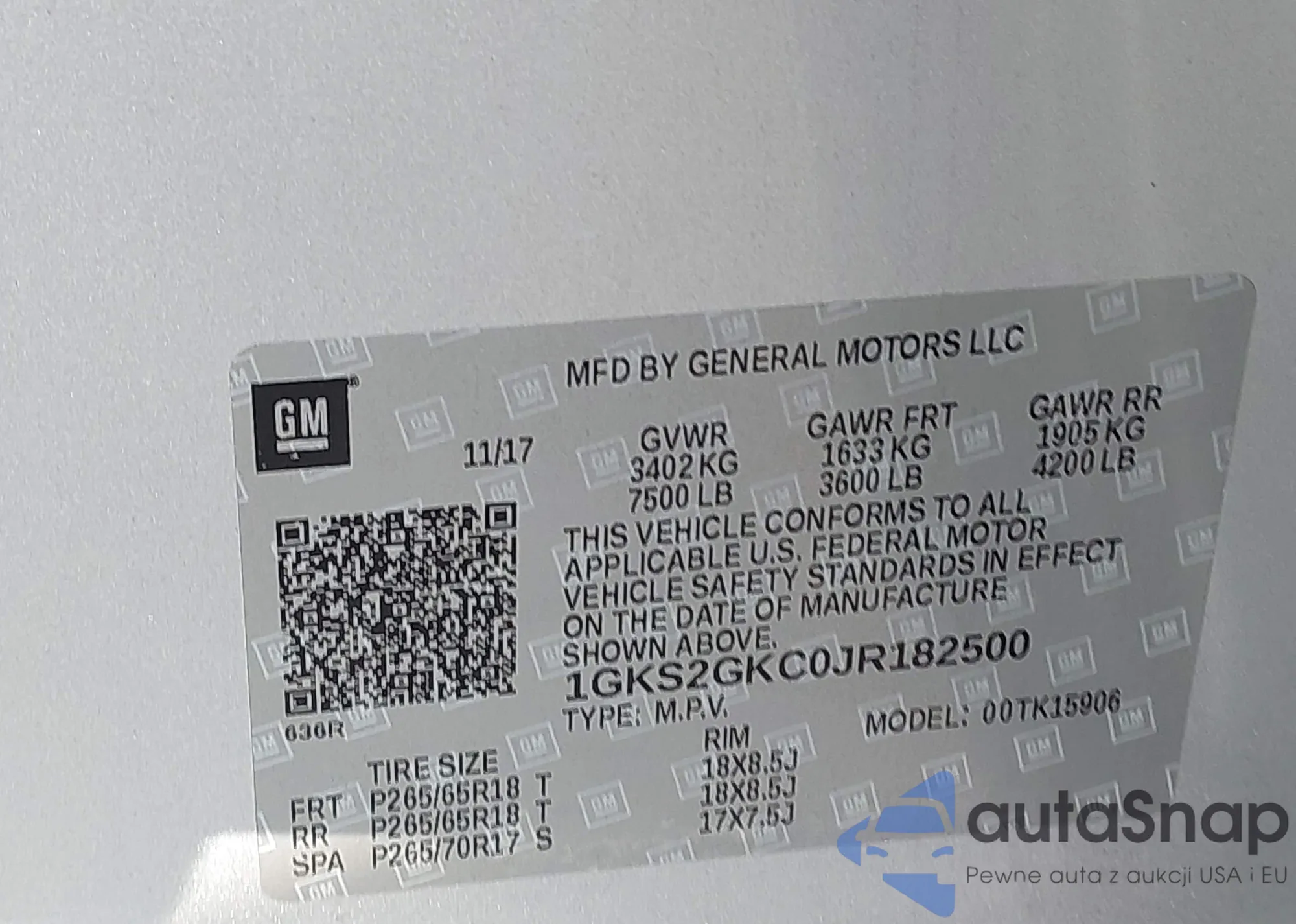 VIN: 1GKS2GKC0JR182500