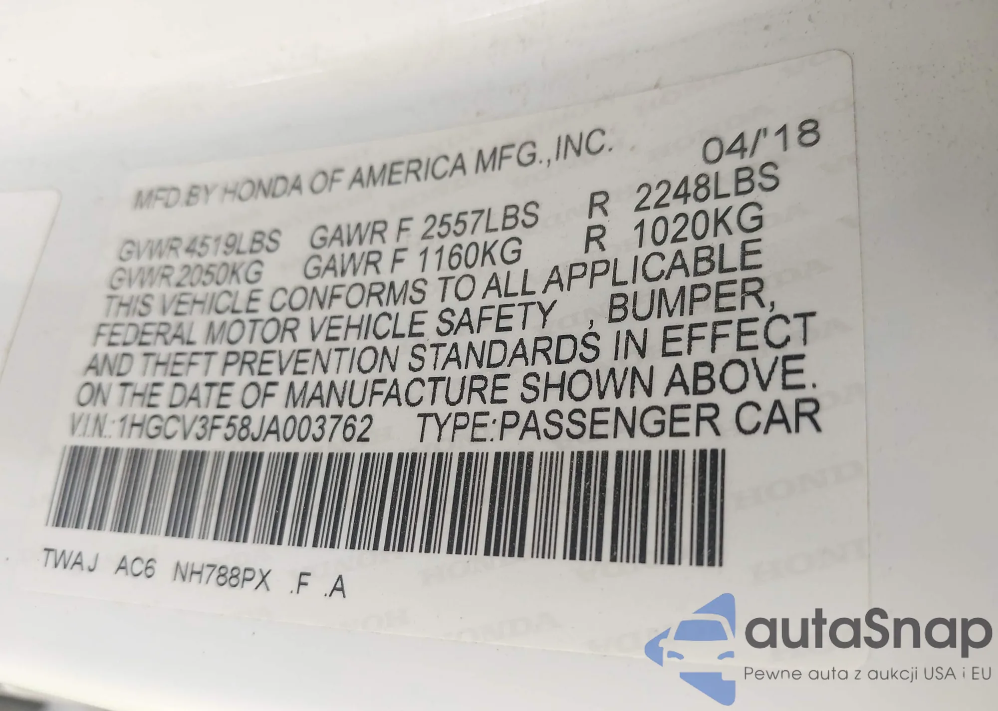 VIN: 1HGCV3F58JA003762
