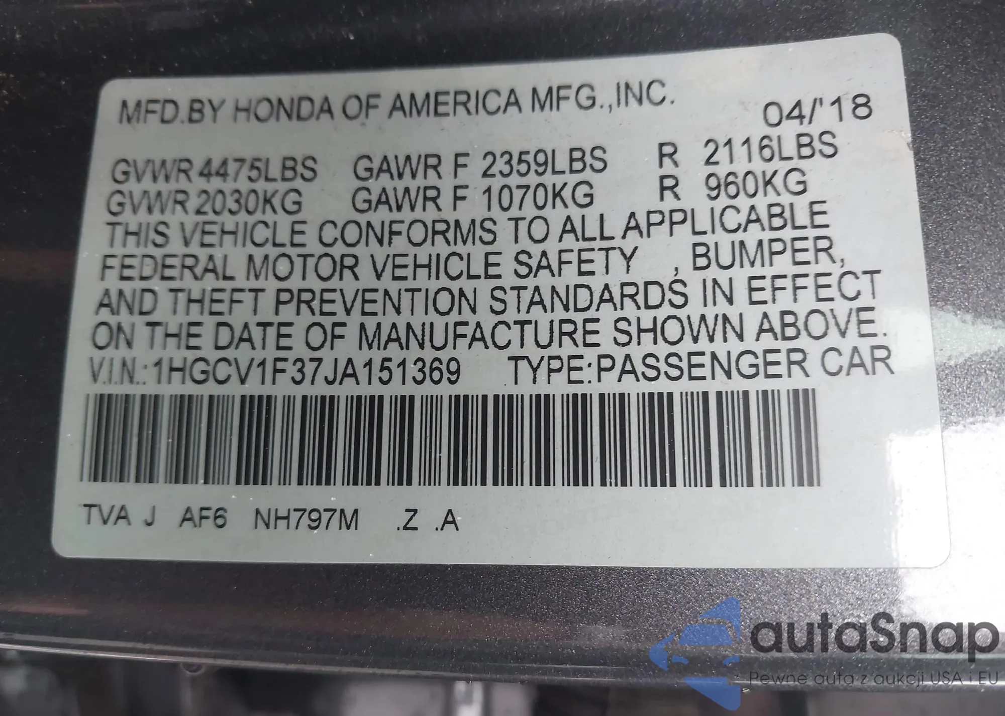 VIN: 1HGCV1F37JA151369