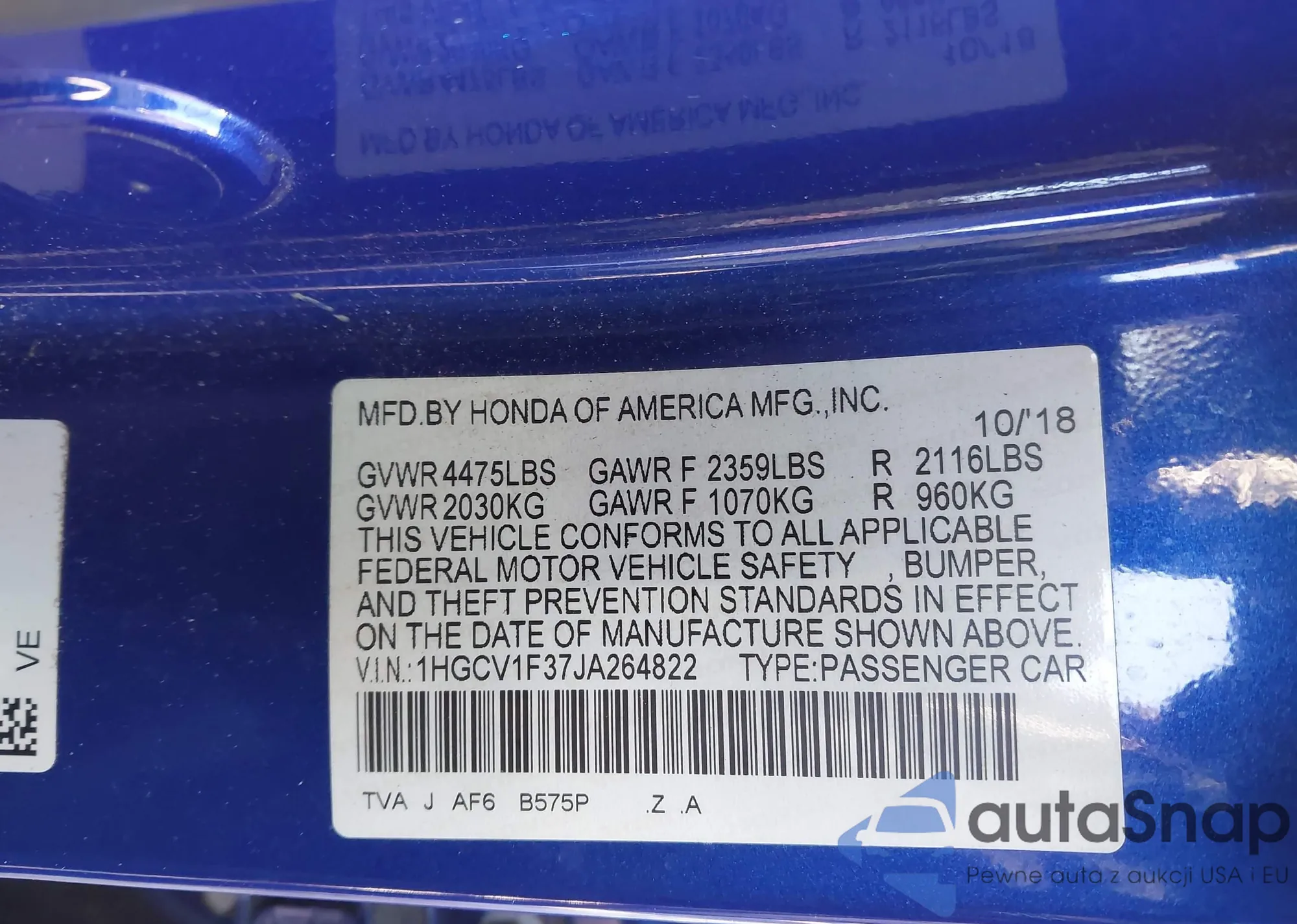 VIN: 1HGCV1F37JA264822