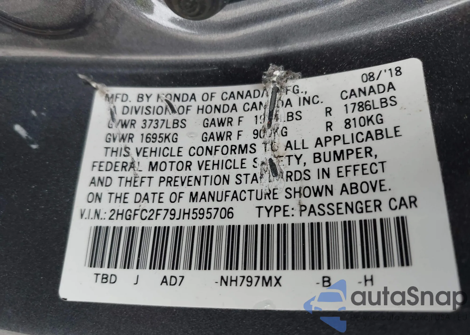 VIN: 2HGFC2F79JH595706
