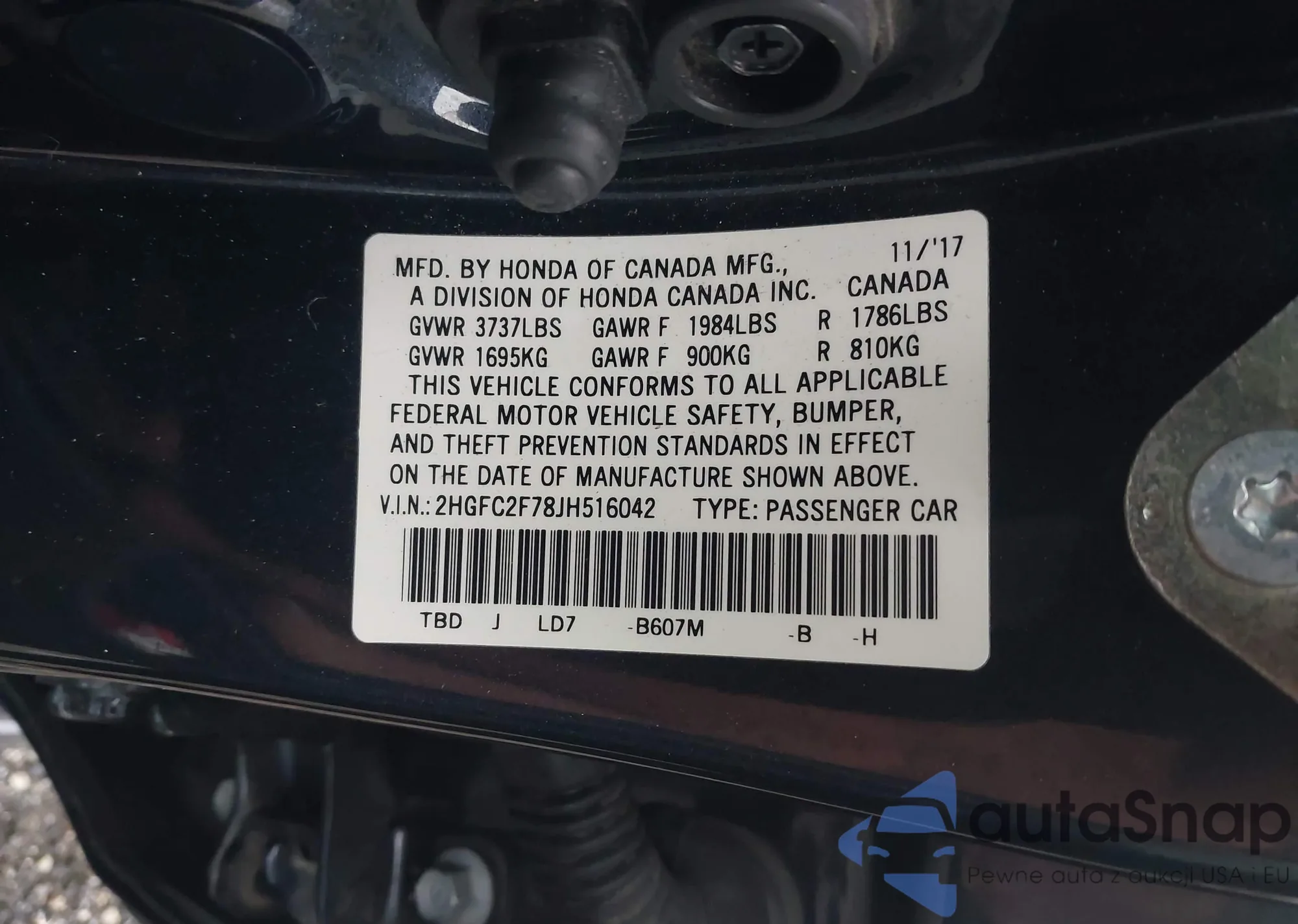 The car Honda Civic 2018 (VIN 2HGFC2F78JH516042) has not been auctioned before. The documents are clean, and the mileage matches or is below the market average. Sold by an insurance company – we recommend purchase. Delivery to the port will take approx. 6–8 weeks.