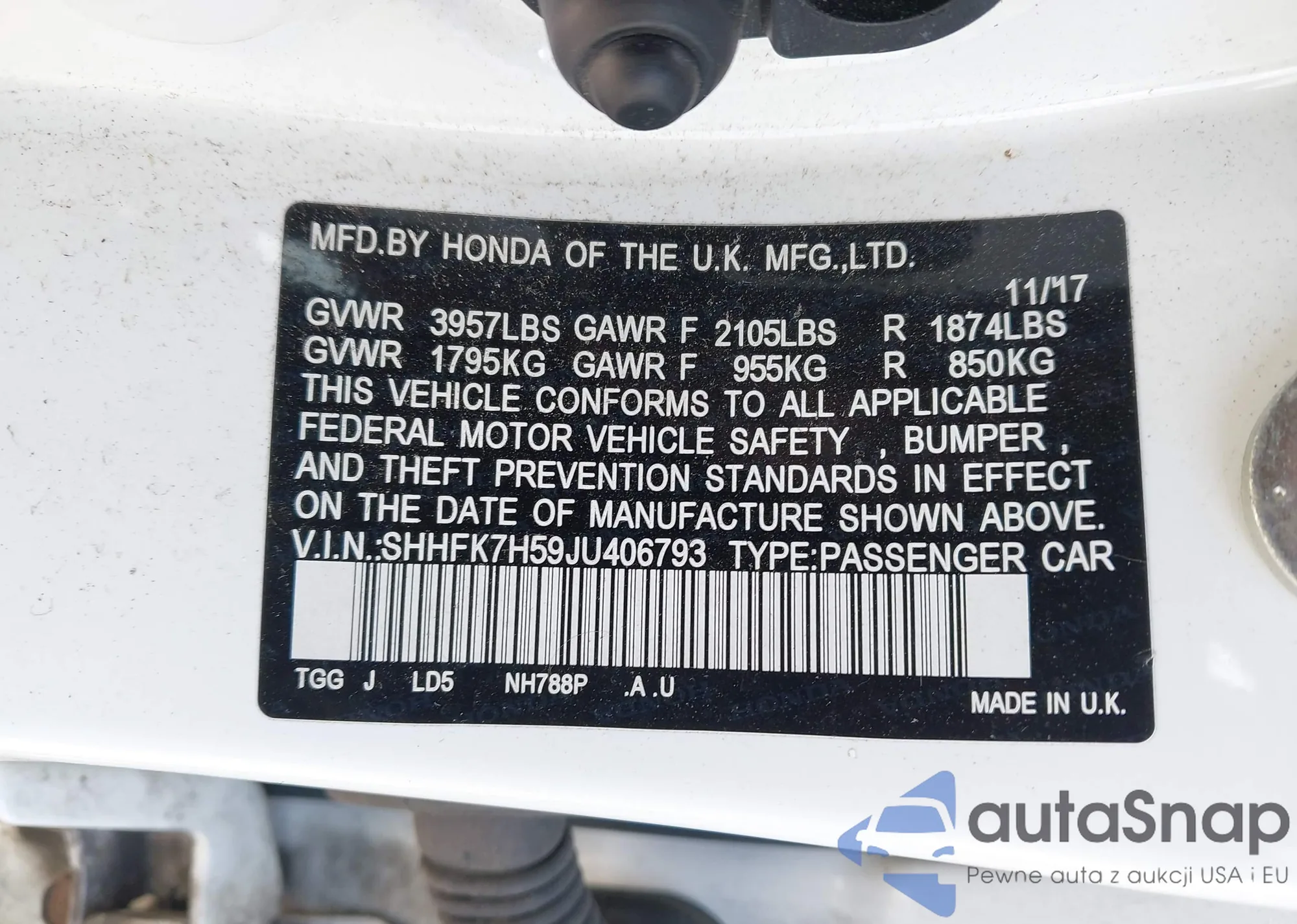 VIN: SHHFK7H59JU406793