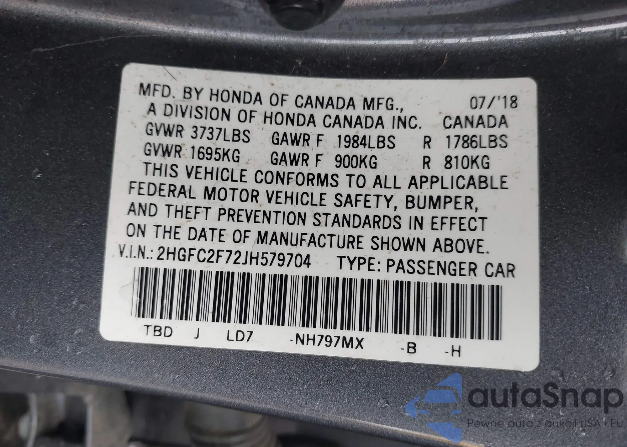 VIN: 2HGFC2F72JH579704