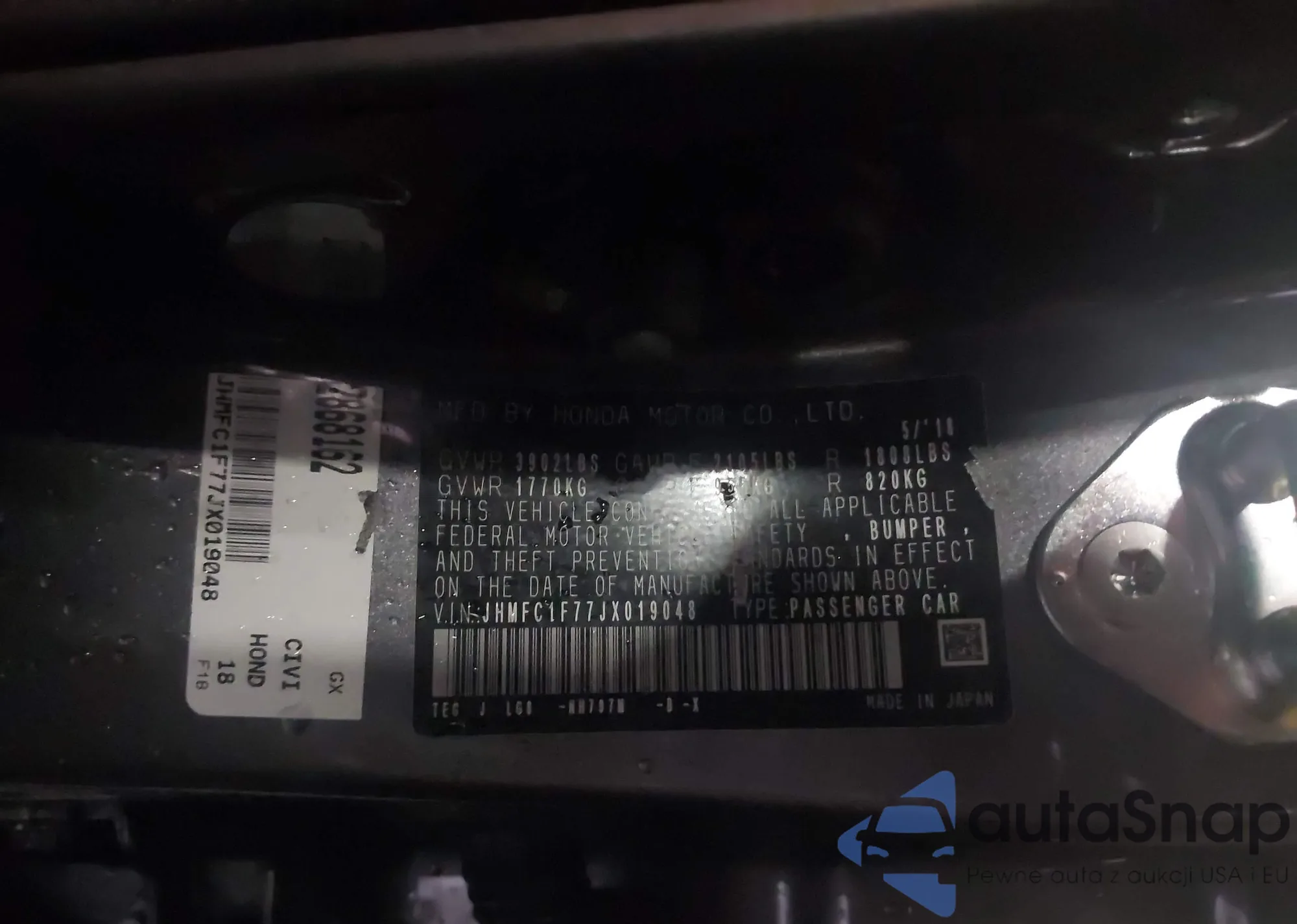 VIN: JHMFC1F77JX019048