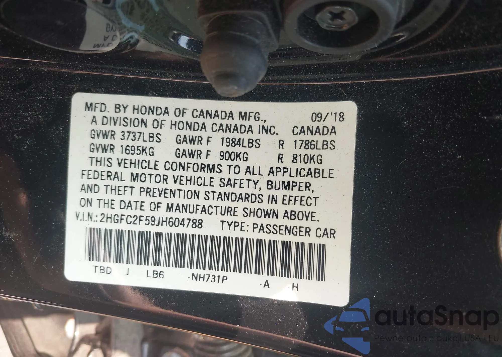 VIN: 2HGFC2F59JH604788