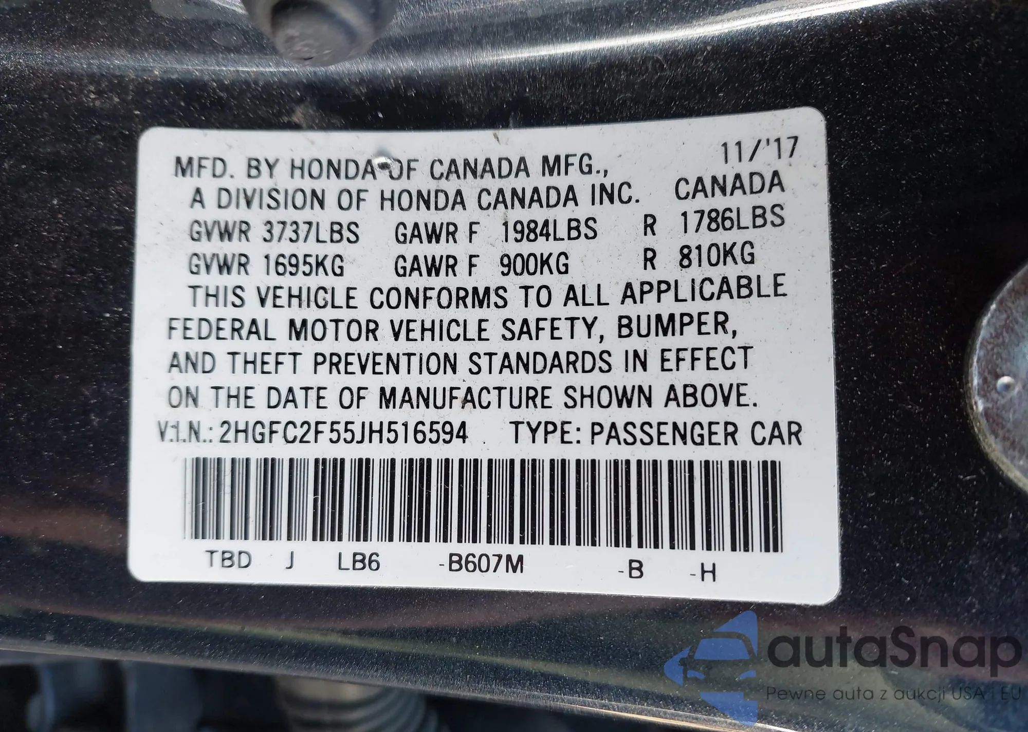 The car Honda Civic 2018 (VIN 2HGFC2F55JH516594) has not been auctioned before. The documents are clean, and the mileage matches or is below the market average. Sold by an insurance company – we recommend purchase. Delivery to the port will take approx. 6–8 weeks.