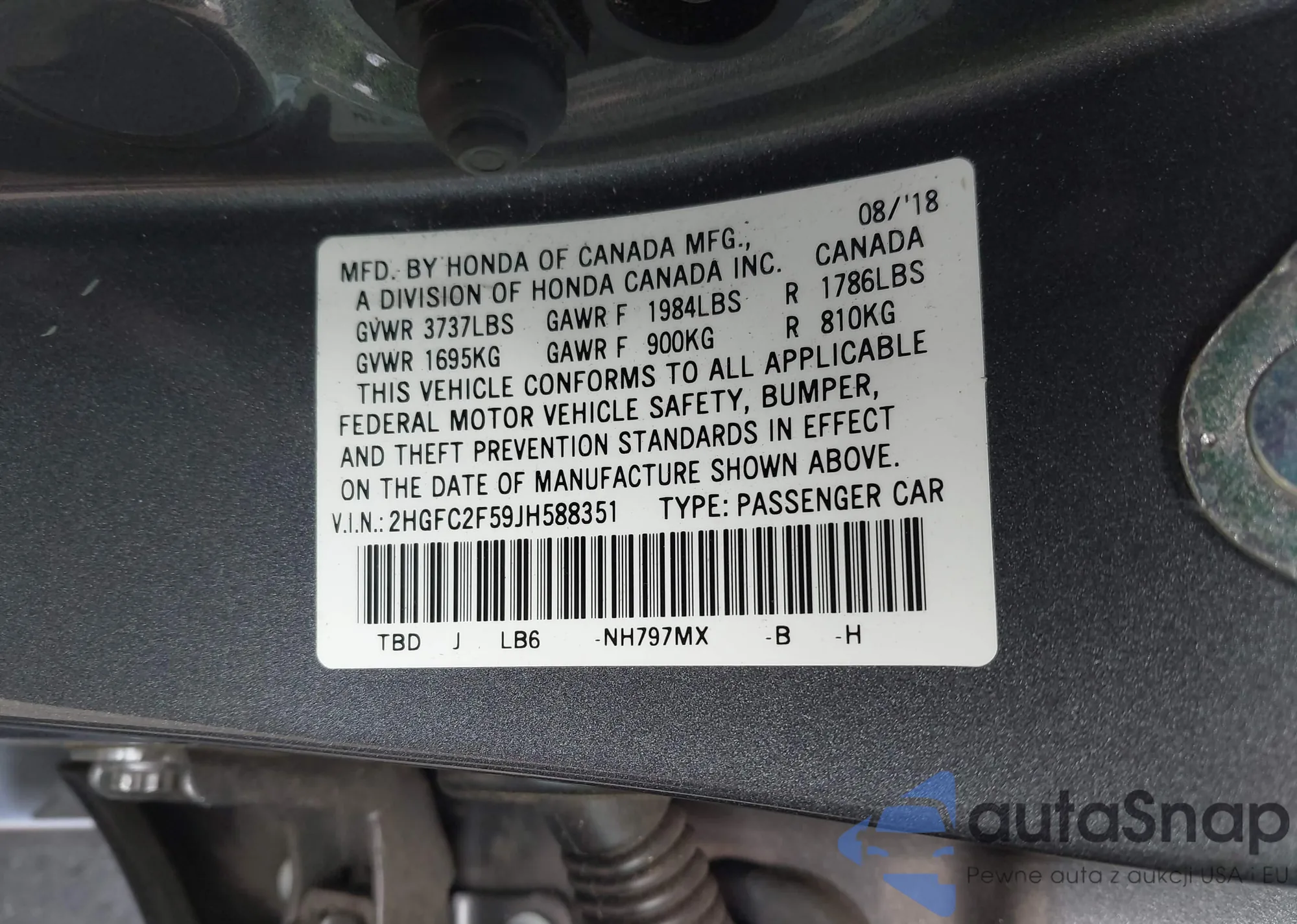 VIN: 2HGFC2F59JH588351