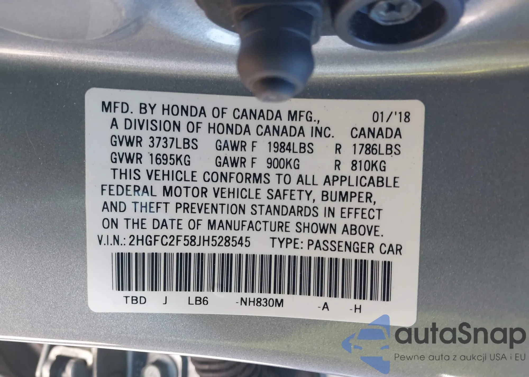 VIN: 2HGFC2F58JH528545