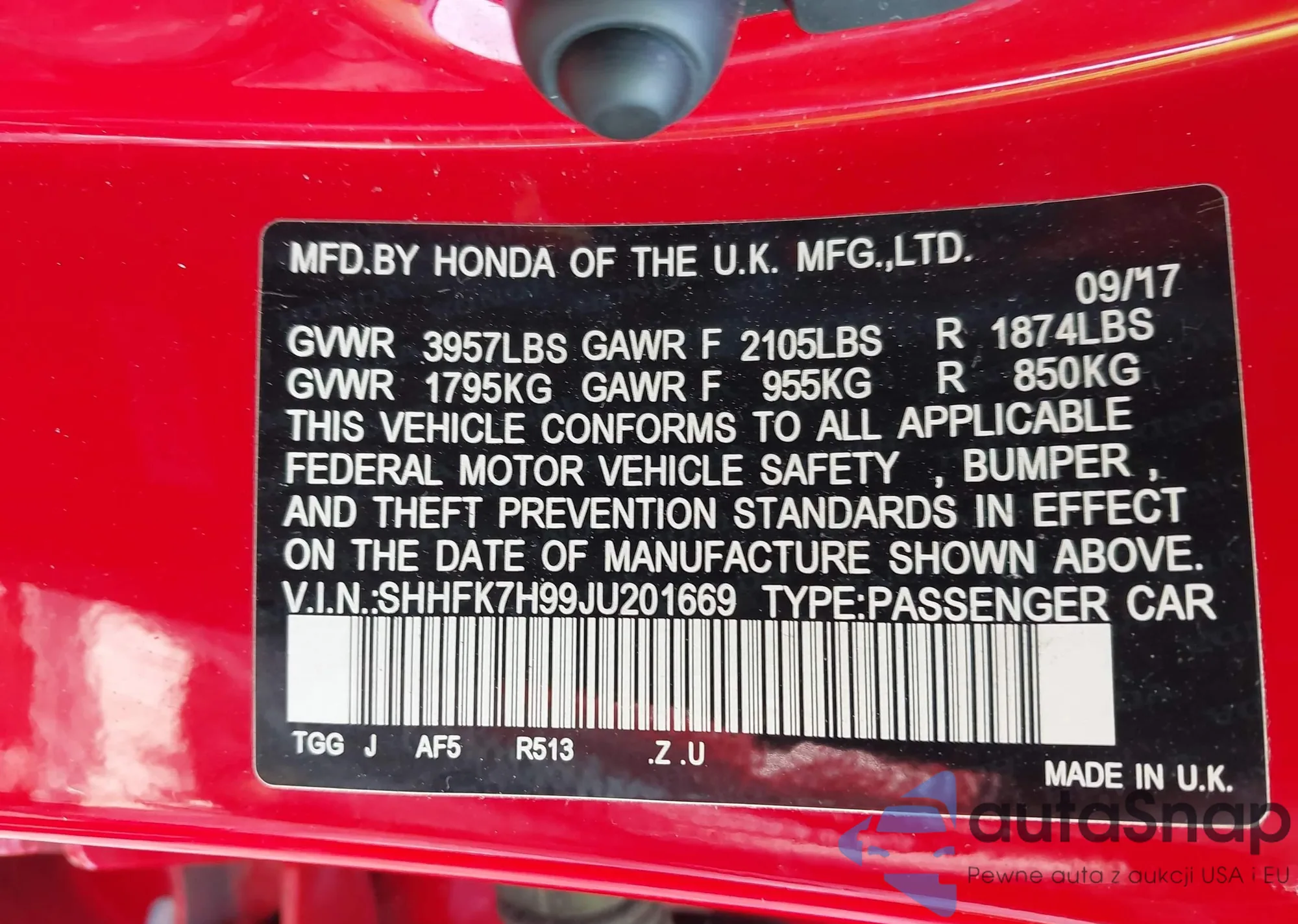 VIN: SHHFK7H99JU201669