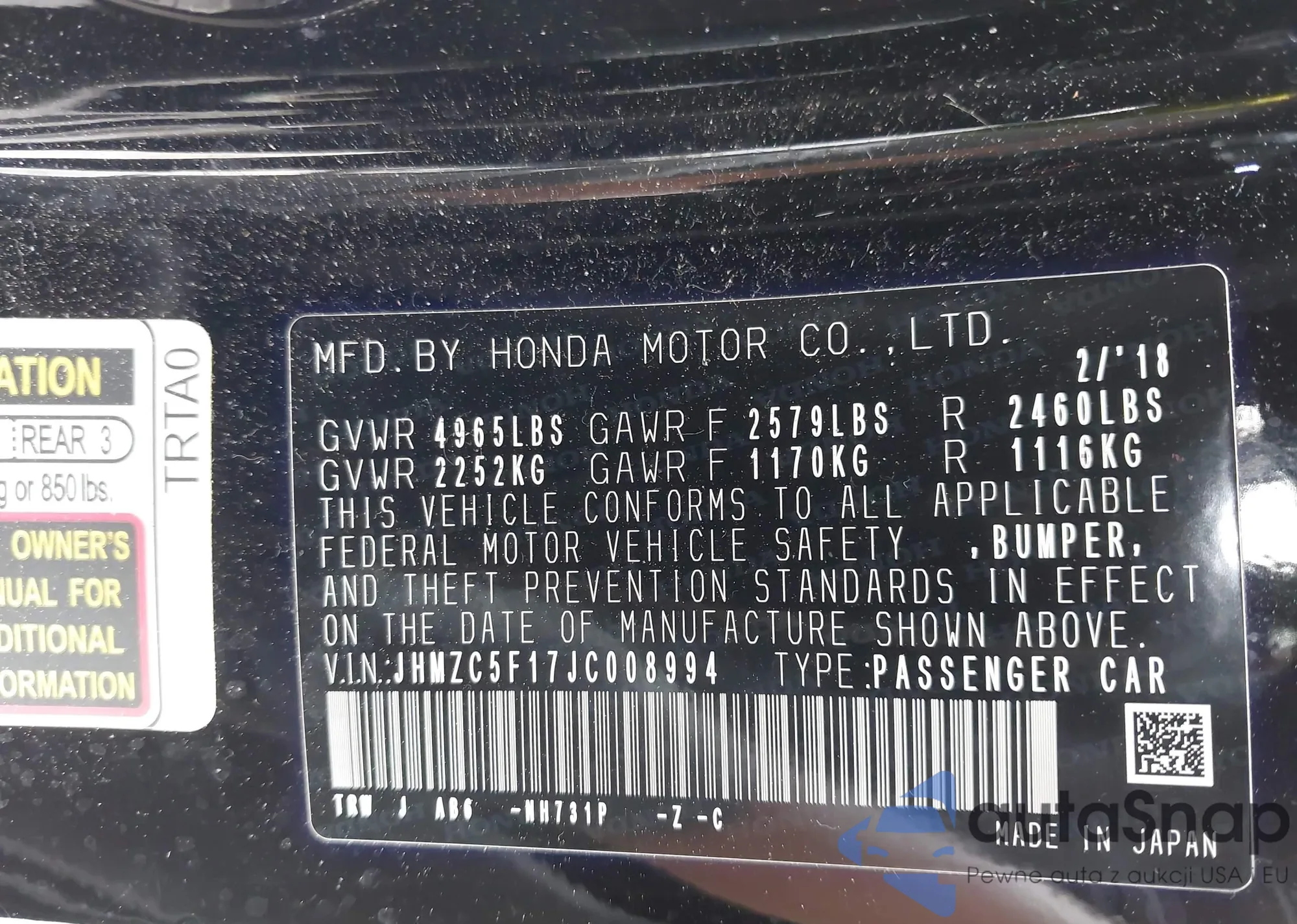 VIN: JHMZC5F17JC008994