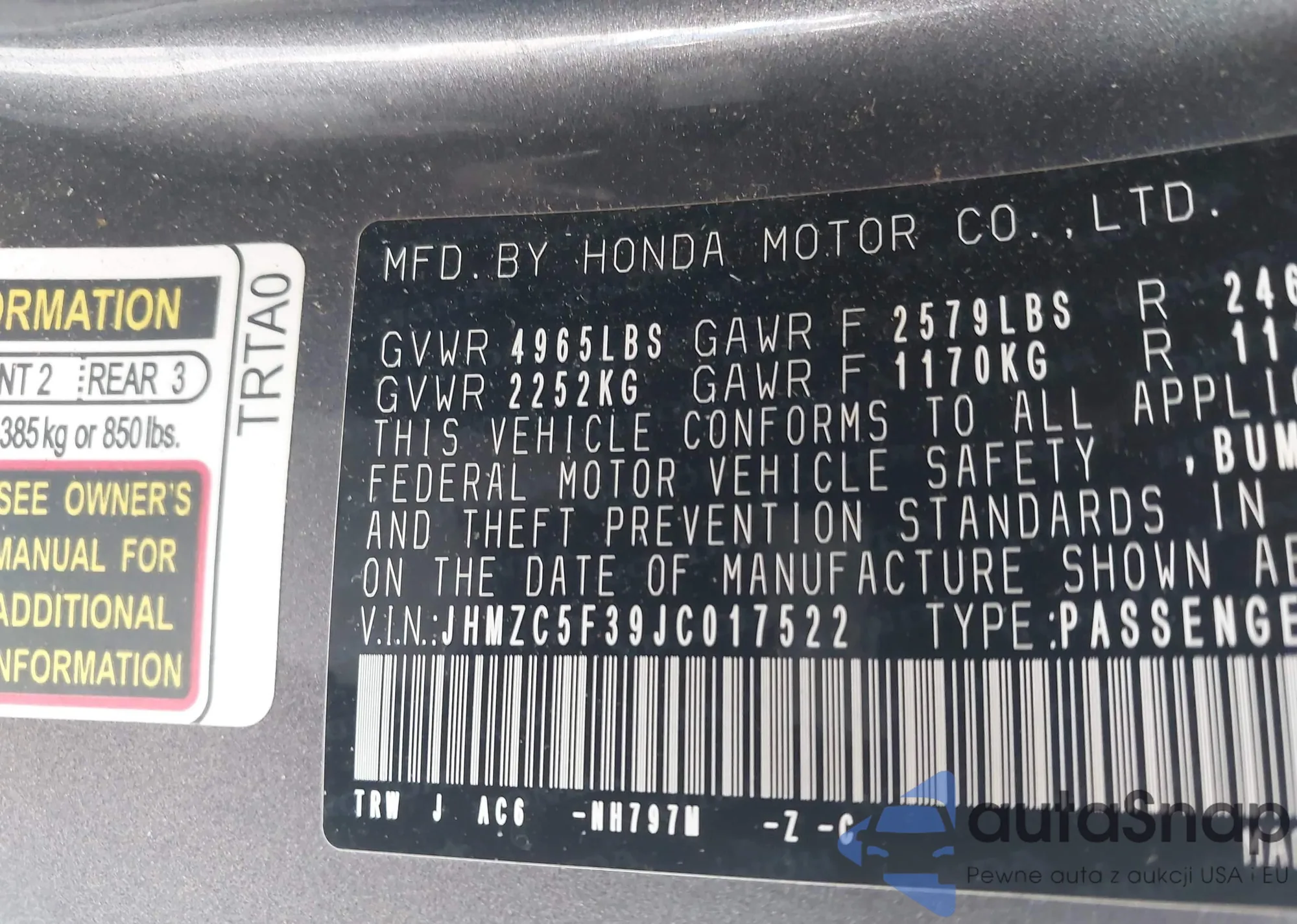 JHMZC5F39JC017522 IAAI