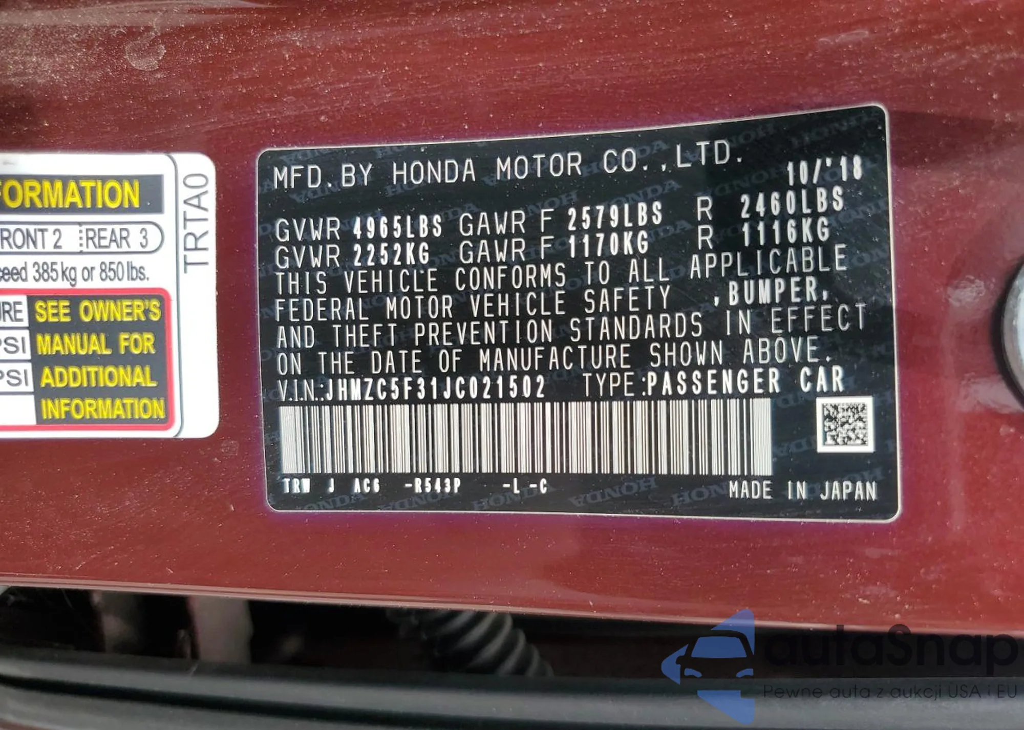 VIN: JHMZC5F31JC021502