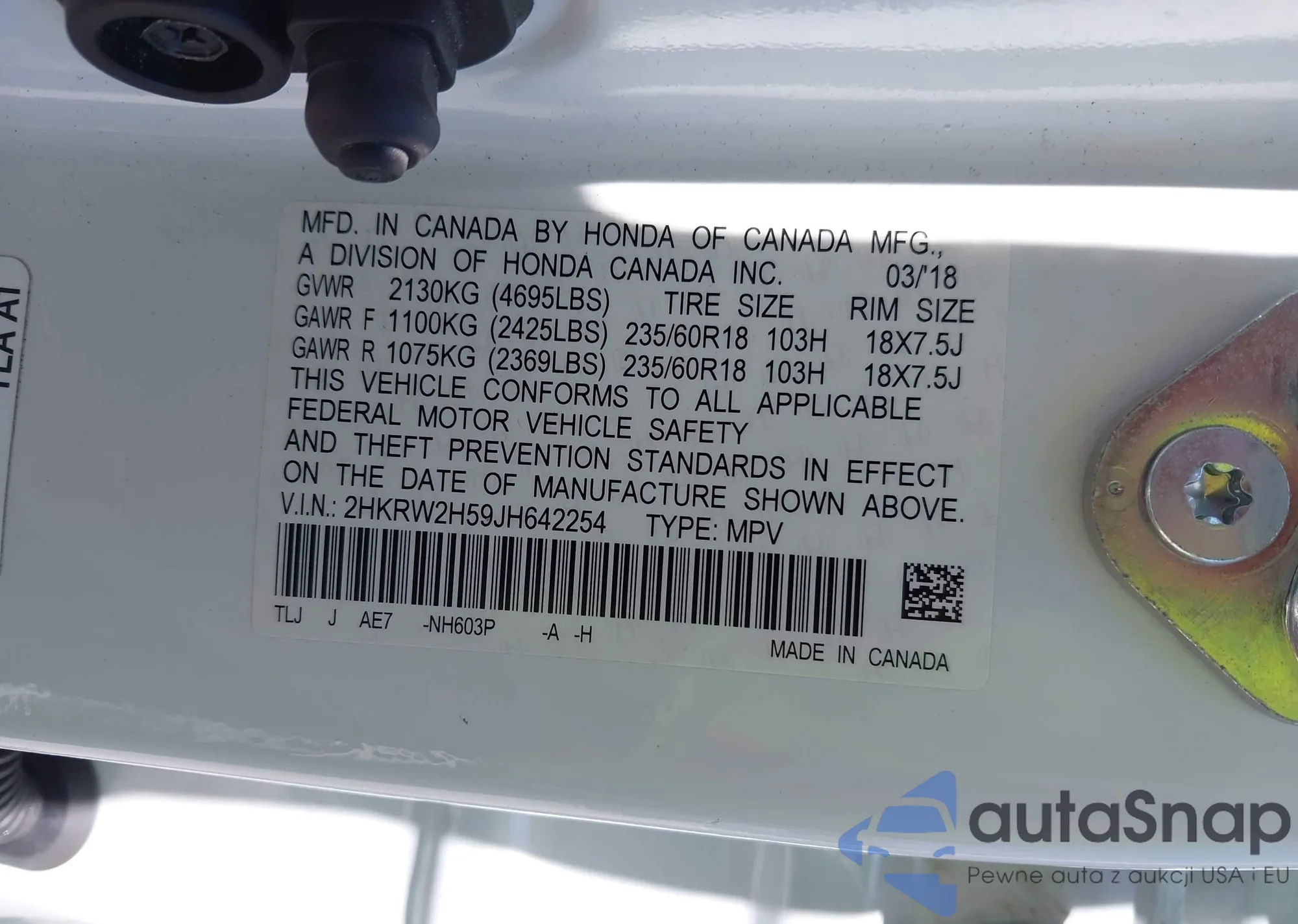 VIN: 2HKRW2H59JH642254