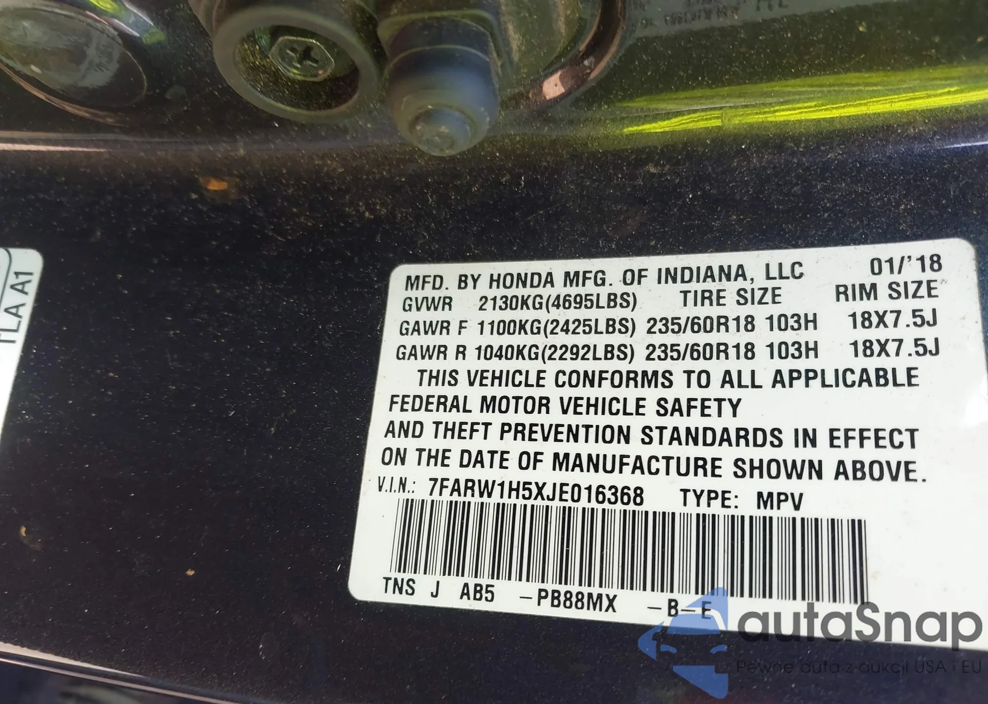 VIN: 7FARW1H5XJE016368