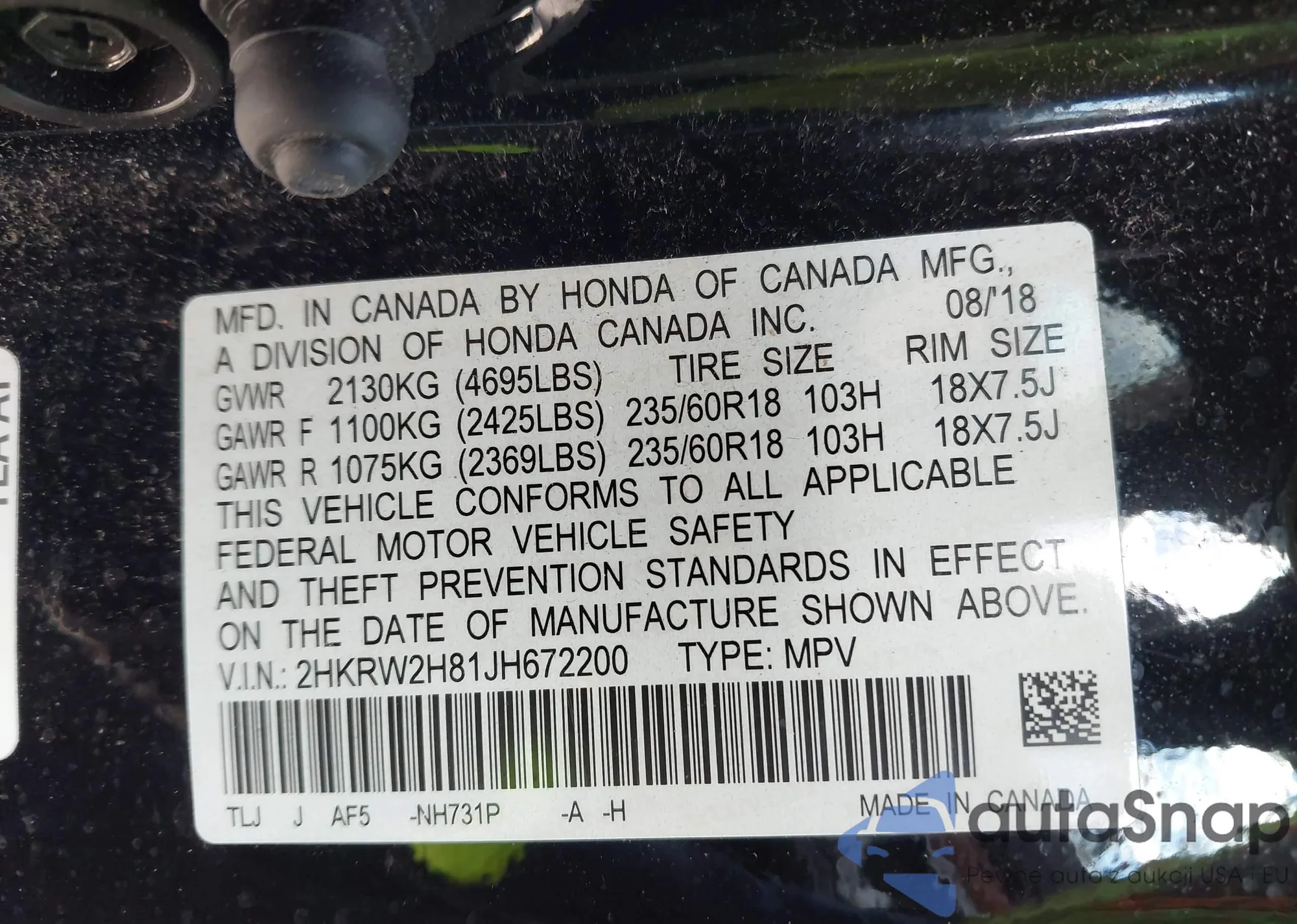 VIN: 2HKRW2H81JH672200