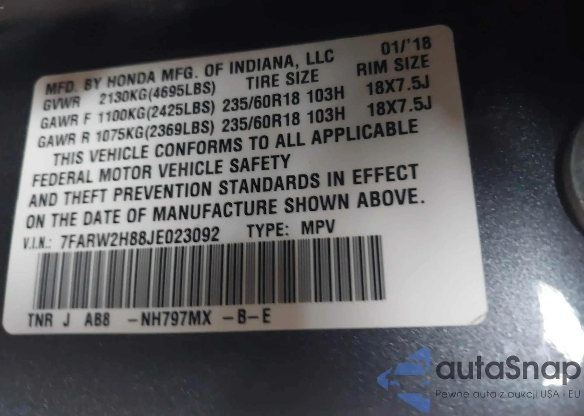 VIN: 7FARW2H88JE023092