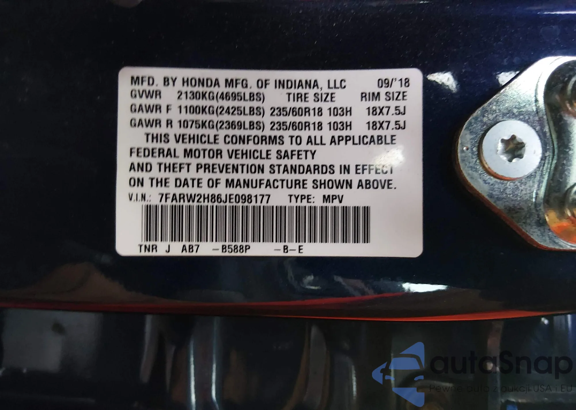 VIN: 7FARW2H86JE098177