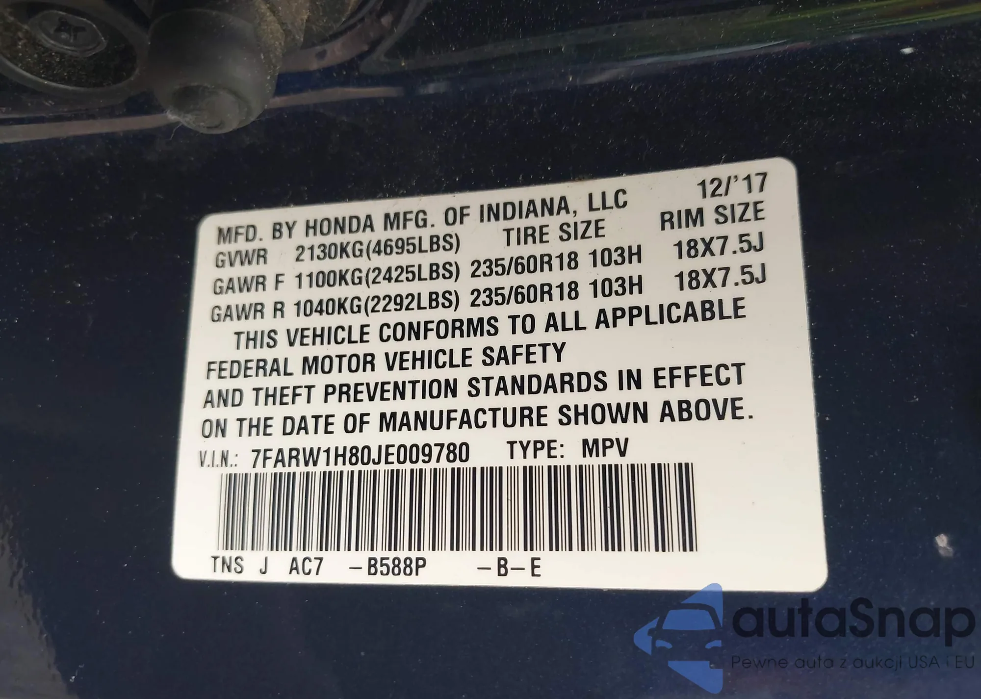 VIN: 7FARW1H80JE009780