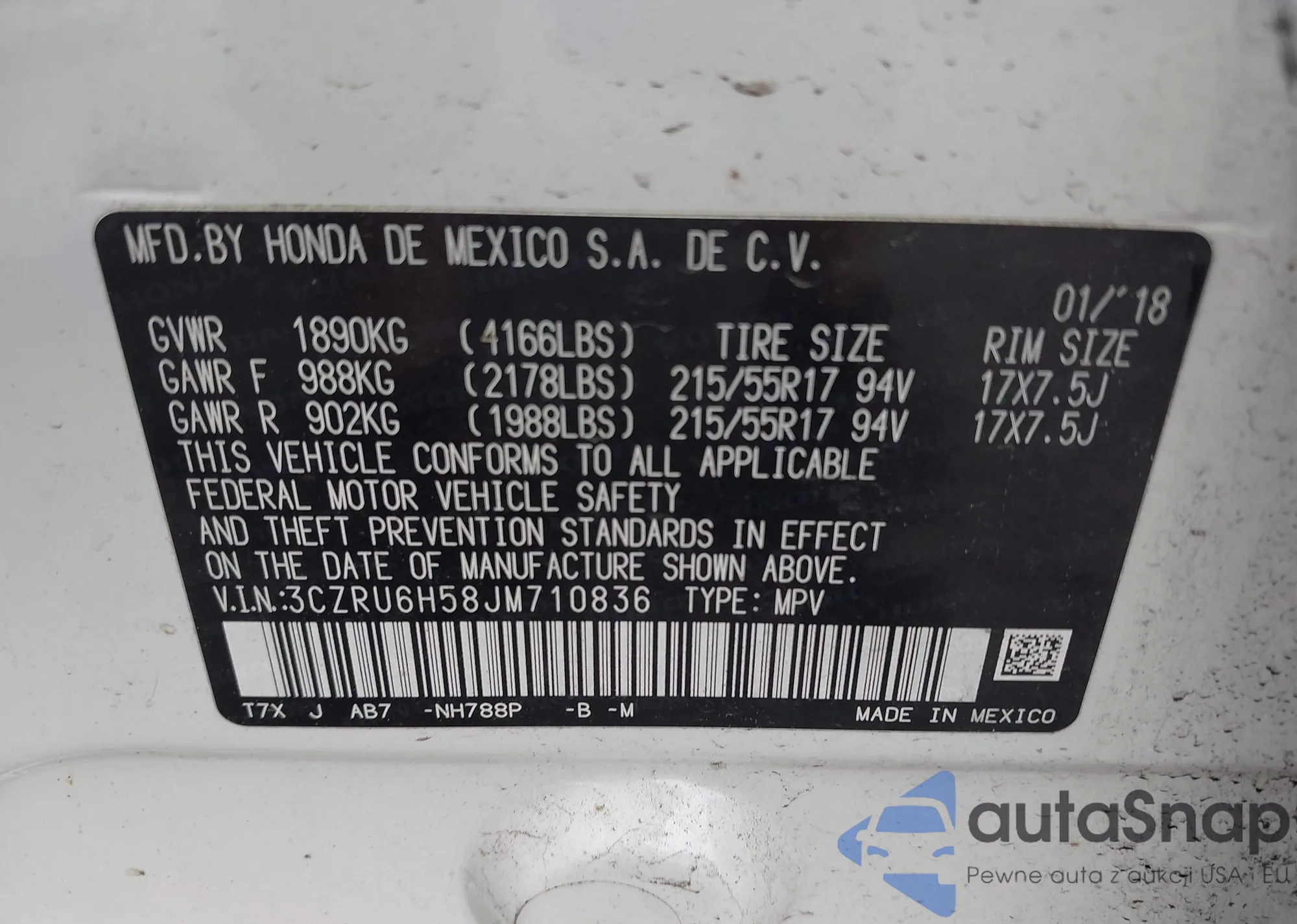 VIN: 3CZRU6H58JM710836