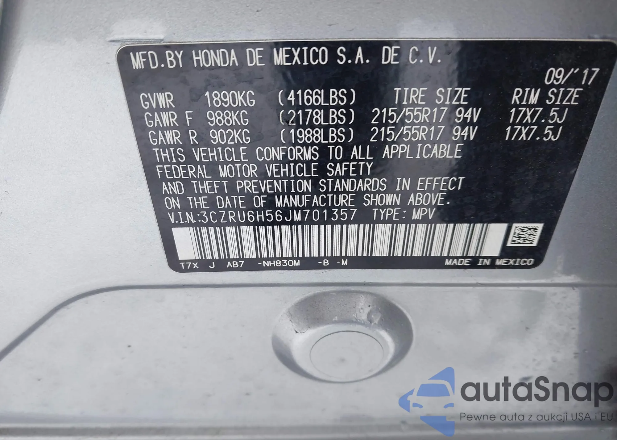 VIN: 3CZRU6H56JM701357