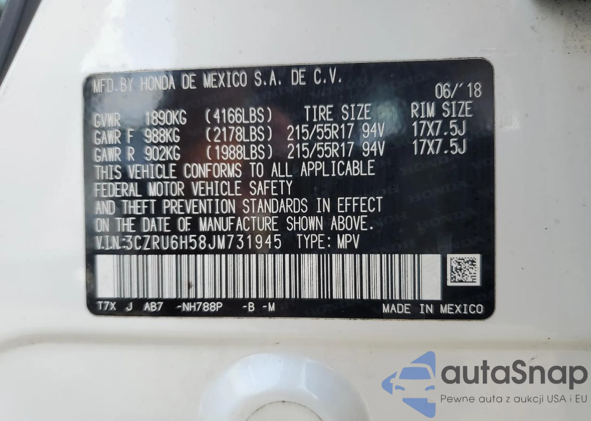 VIN: 3CZRU6H58JM731945