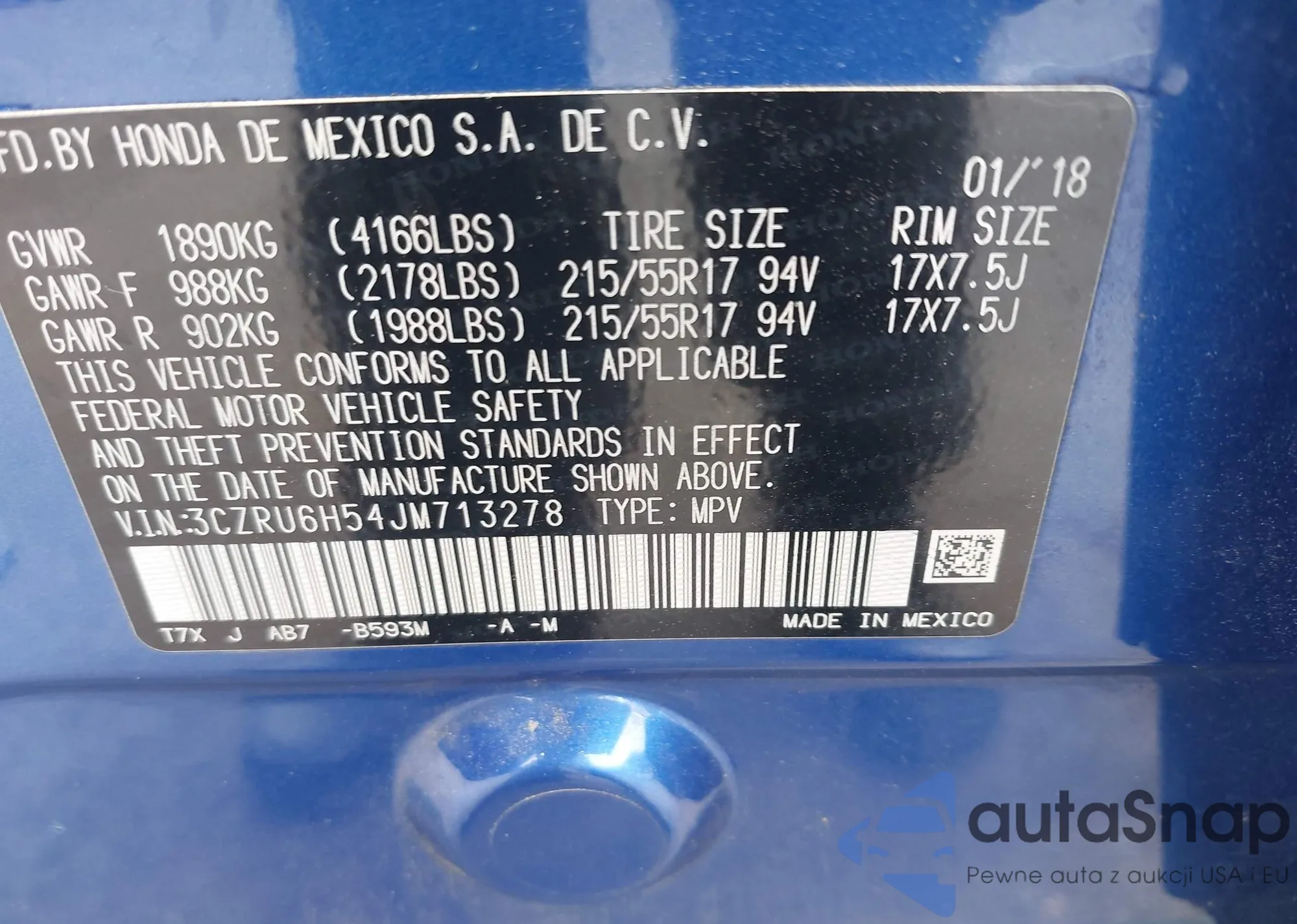 VIN: 3CZRU6H54JM713278