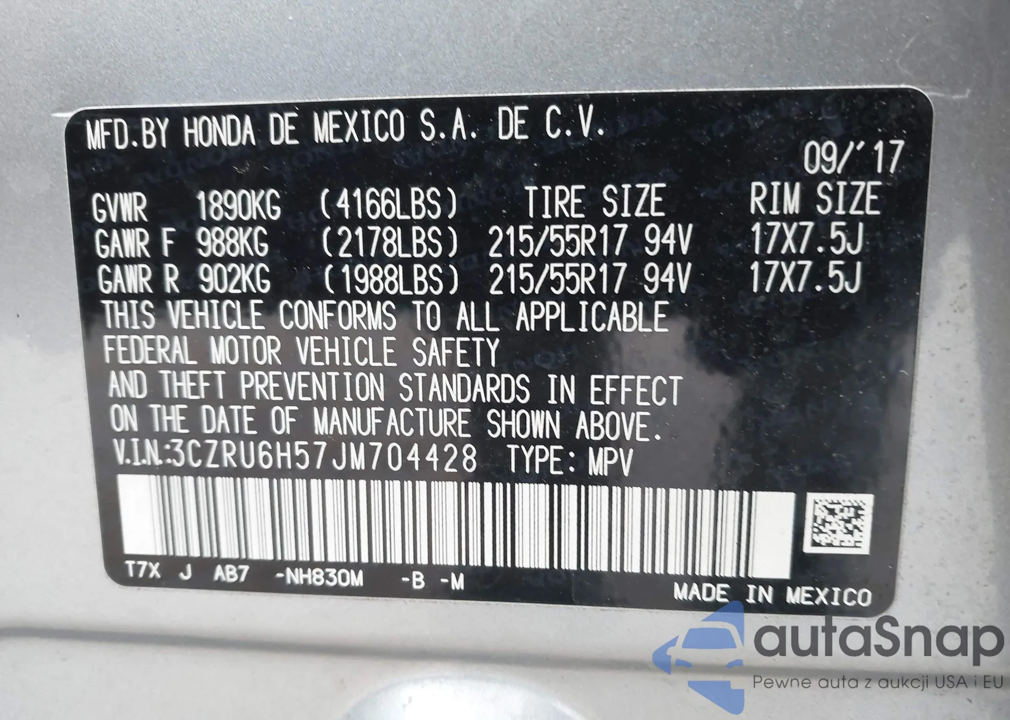 VIN: 3CZRU6H57JM704428