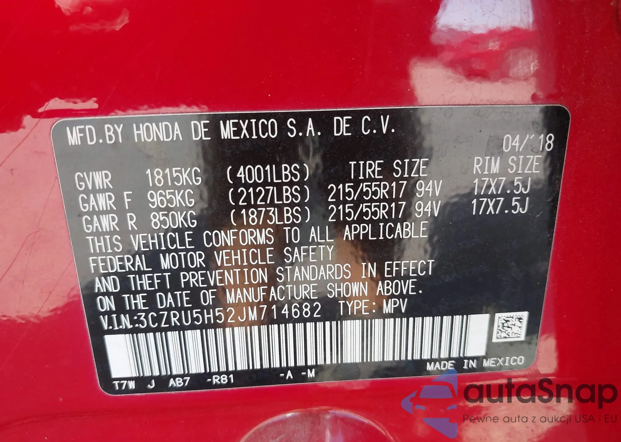 VIN: 3CZRU5H52JM714682