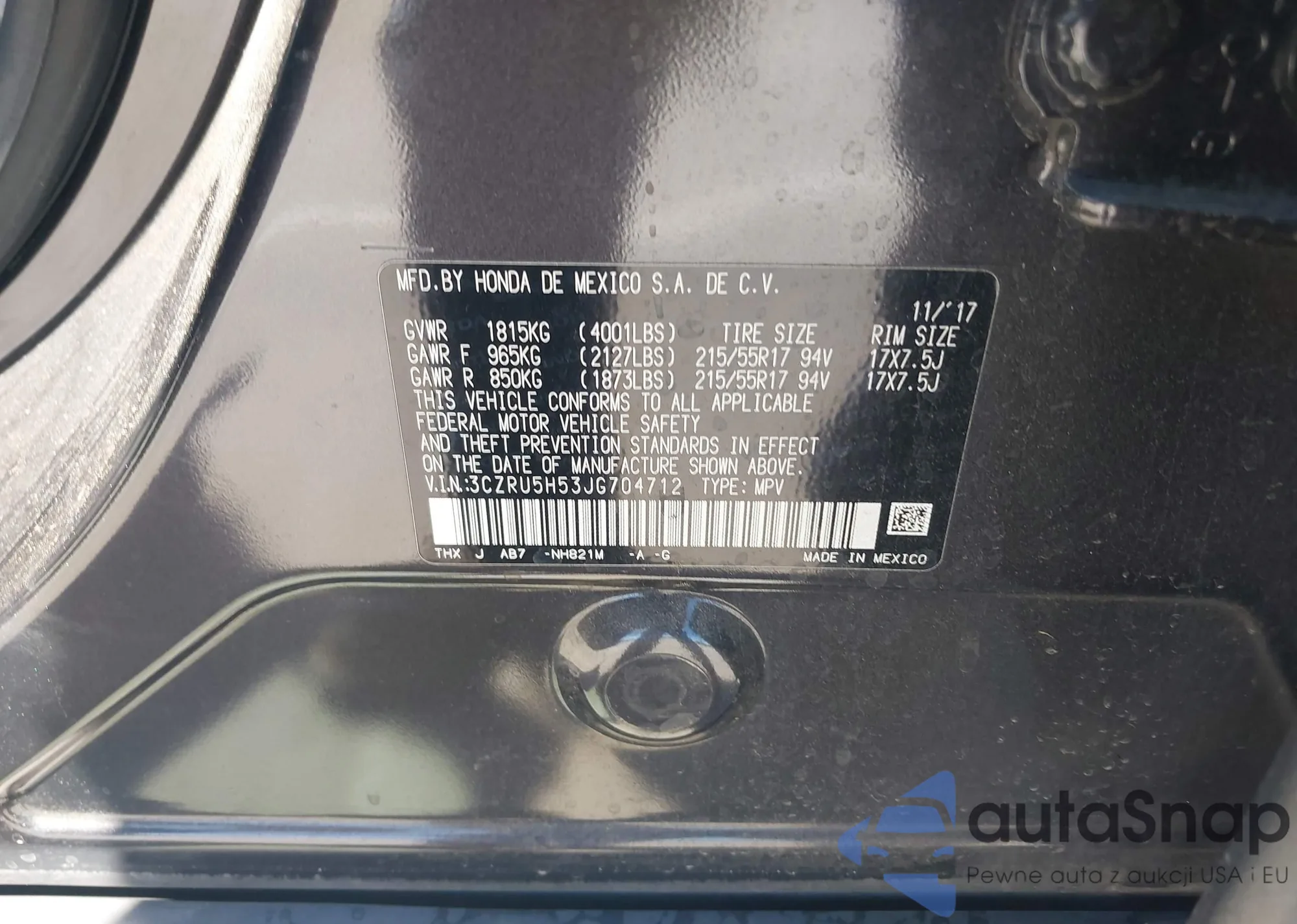 VIN: 3CZRU5H53JG704712