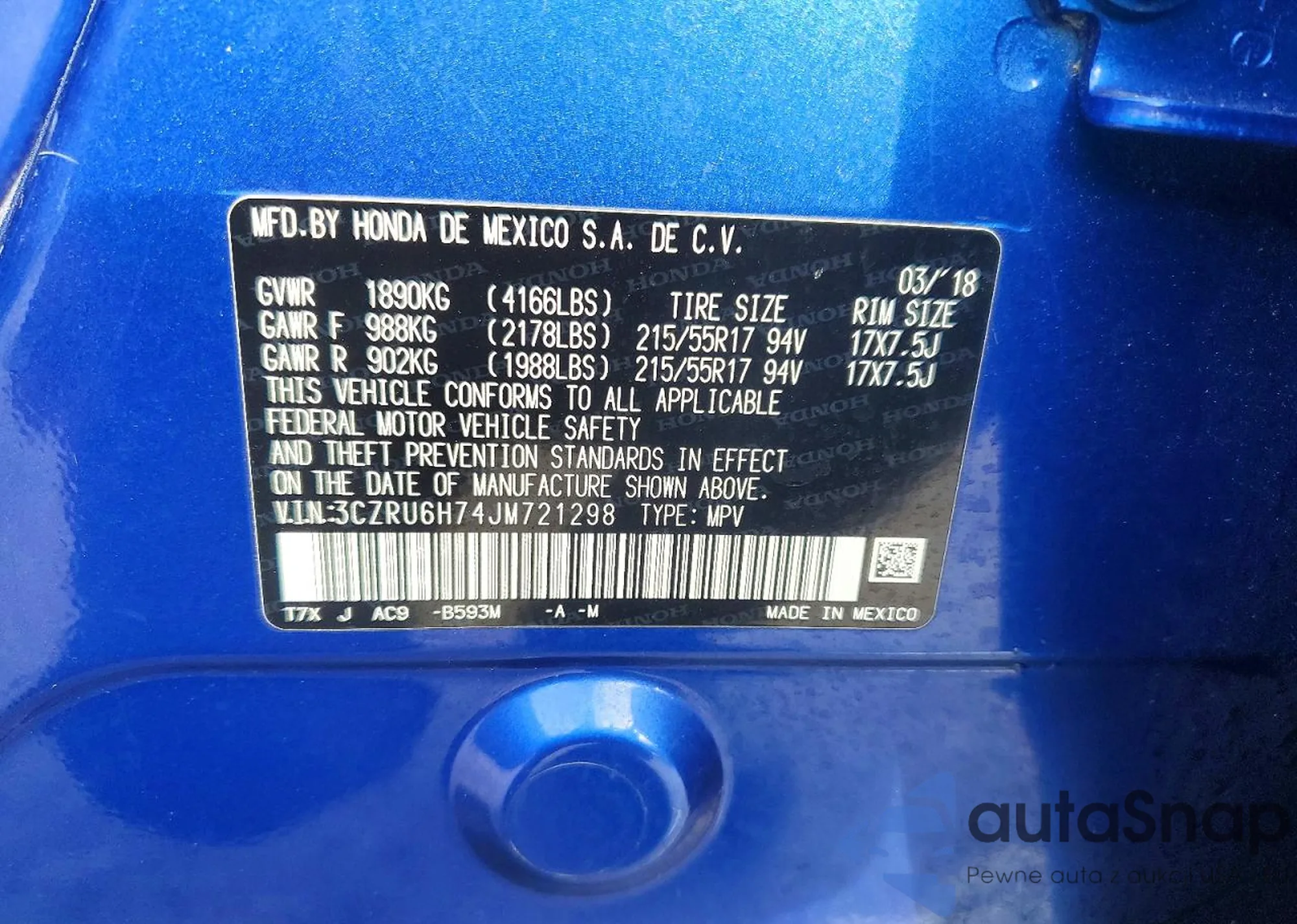 VIN: 3CZRU6H74JM721298